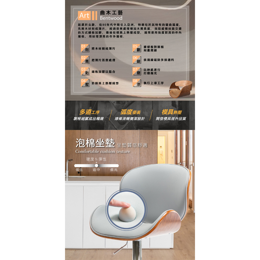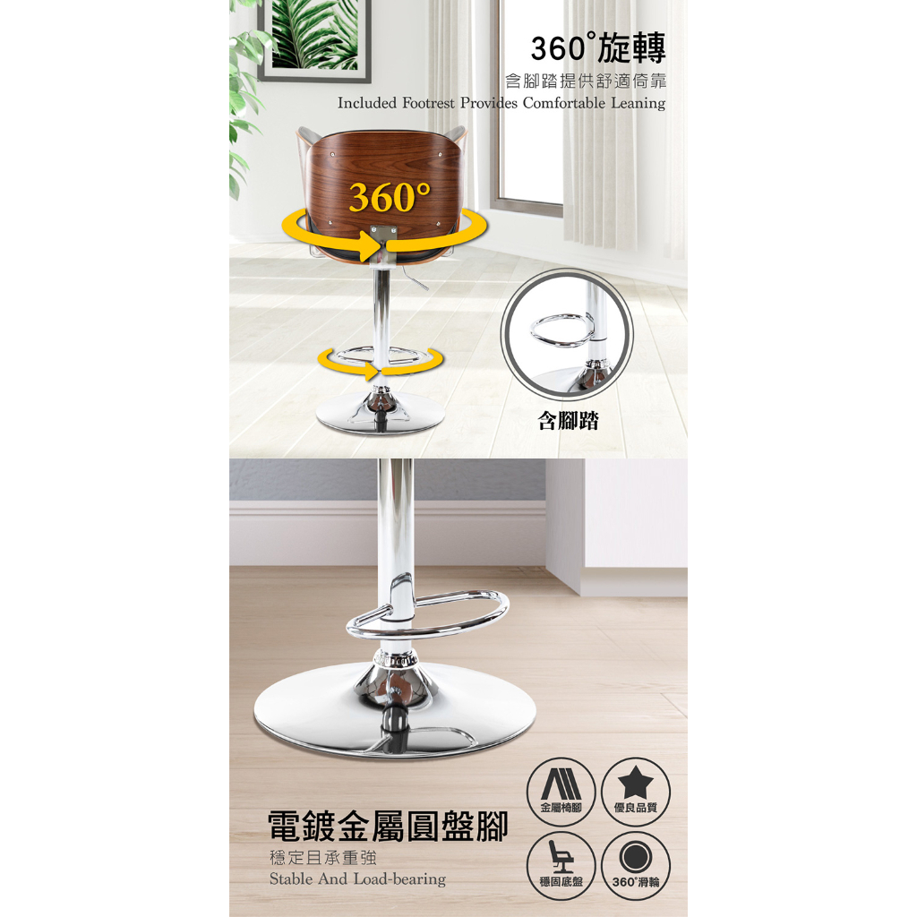 E-home 弗蕾達曲木吧臺椅 高腳椅 升降椅 餐桌椅 椅子 吧台椅