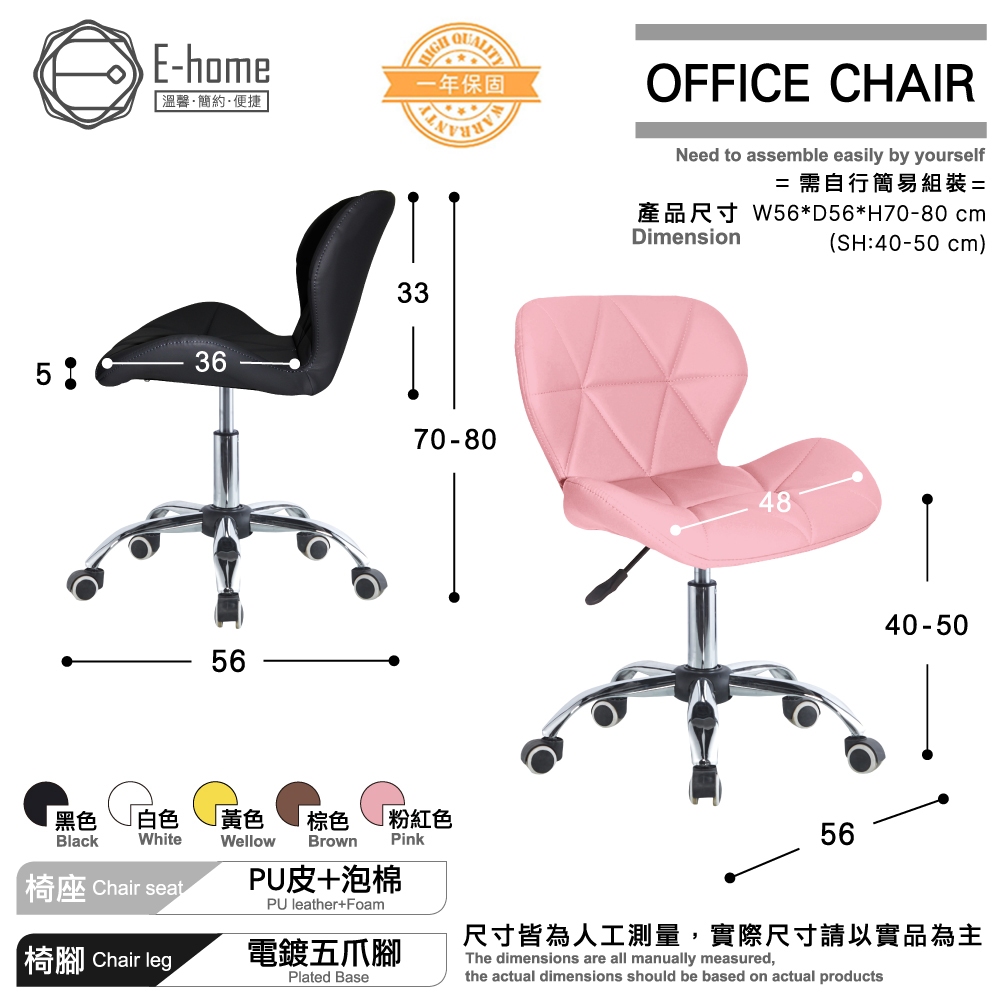 E-home 雷達加厚軟墊透氣皮革 電腦椅 辦公椅 美容椅黑色(PU皮電鍍腳)|白色(PU皮電鍍腳)|粉紅色(PU皮電鍍腳)|棕色(PU皮電鍍腳)|黃色(PU皮電鍍腳)|2入價格(請下單數量2)|4入價格(請下單數量4)|黑色(PU皮黑色鐵腳)|白色(PU皮黑色鐵腳)|粉紅色(PU皮黑色鐵腳)|棕色(PU皮黑色鐵腳)|黃色(PU皮黑色鐵腳)|黑色(PU皮白色鐵腳)|白色(PU皮白色鐵腳)|粉紅色(PU皮白色鐵腳)|棕色(PU皮白色鐵腳)|黃色(PU皮白色鐵腳)Benches, Chairs & StoolsE-home 美規設計傢俱