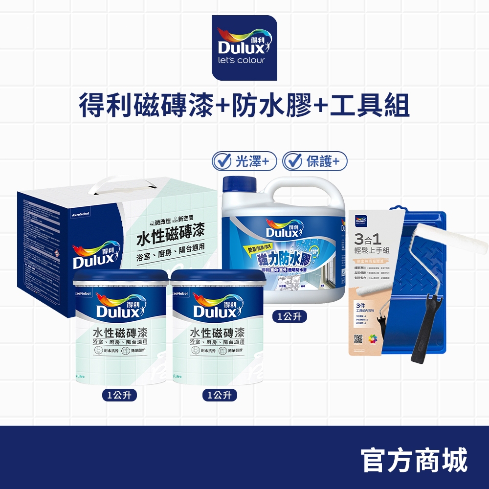 【得利官方旗艦店】磁磚漆+防水膠+工具組(抗污與光澤感提升)極簡白|焦糖棕|迷月灰|薄荷綠|燕麥米|奶油白Wall Paints & CoatingsDulux得利塗料官方旗艦店