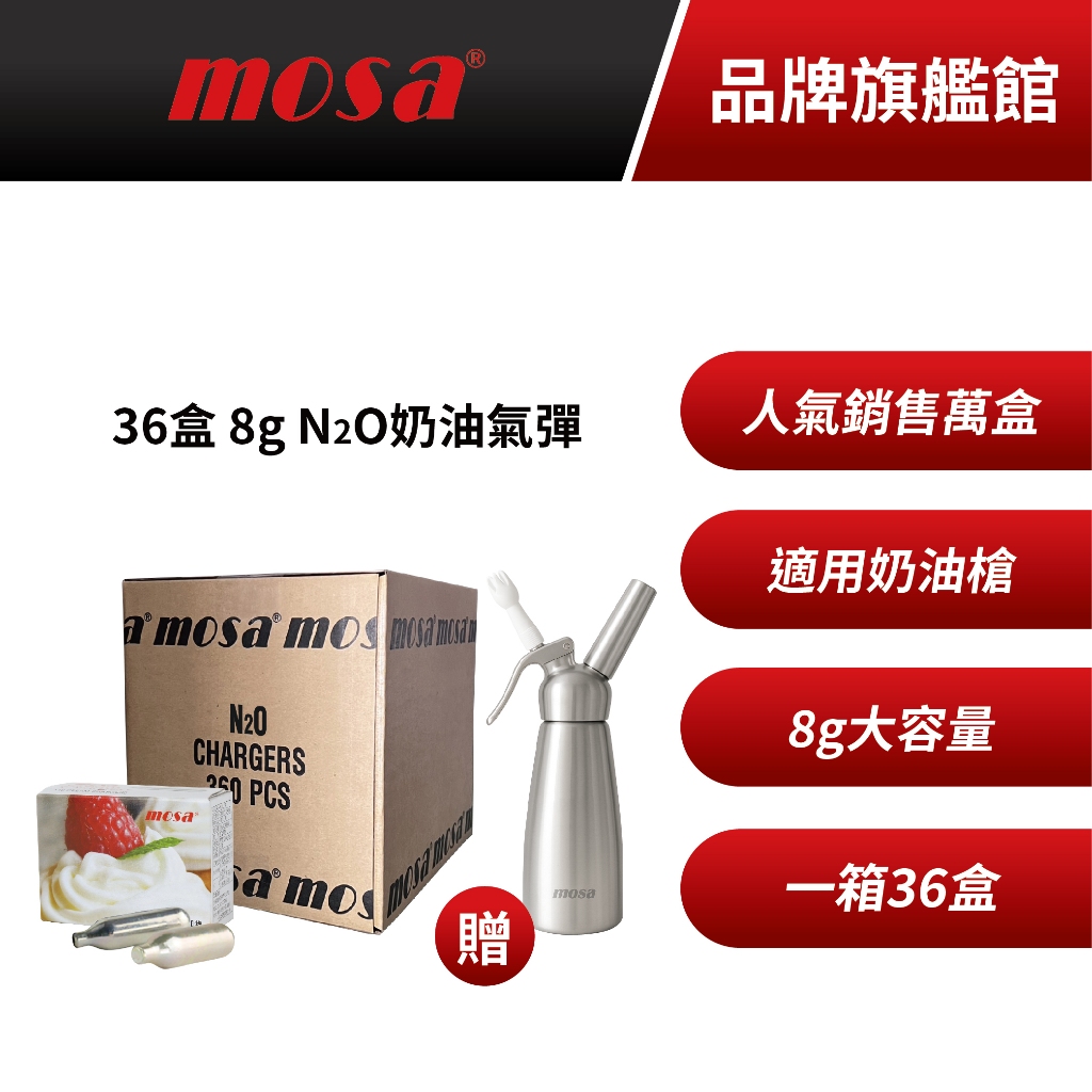 mosa 8g N2O奶油氣彈一箱 奶油槍專用(共36盒入) 原廠整箱 贈圓頭奶油槍 isi一箱|【訂金】一棧板/69箱Bakewares & Decorationsdrinkmate | mosa官方旗艦館