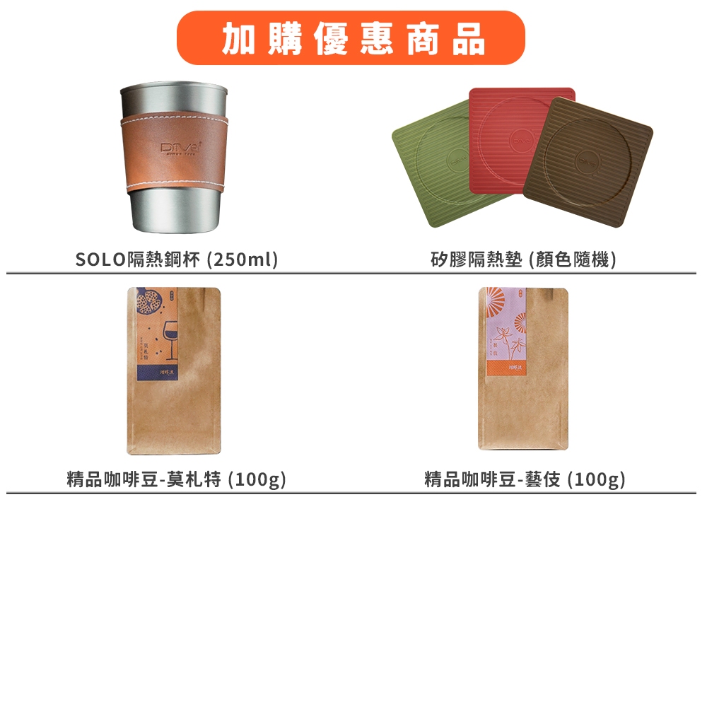 Driver 新手入門手沖咖啡套裝組-1 手沖壺 細口壺 咖啡濾杯 不鏽鋼濾杯 耐熱玻璃壺 溫度計 手沖咖啡組 官方直營新手入門手沖咖啡套裝組-1,無需加購|新手入門手沖咖啡套裝組-1,SOLO隔熱鋼杯 (250ml)|新手入門手沖咖啡套裝組-1,矽膠隔熱墊 (顏色隨機)|新手入門手沖咖啡套裝組-1,精品咖啡豆-莫札特 (100g)|新手入門手沖咖啡套裝組-1,精品咖啡豆-藝伎 (100g)Tea, Coffee & Bartending EquipmentsDriver 官方旗艦店|村宜企業
