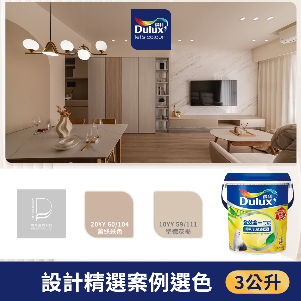【得利官方旗艦店】A986 全效合一竹炭乳膠漆 設計師精選色系-璞菲設計 電腦調色(3公升裝)|客製化調色漆20YY 60/104(客製色無退換)|10YY 59/111(客製色無退換)Wall Paints & CoatingsDulux得利塗料官方旗艦店