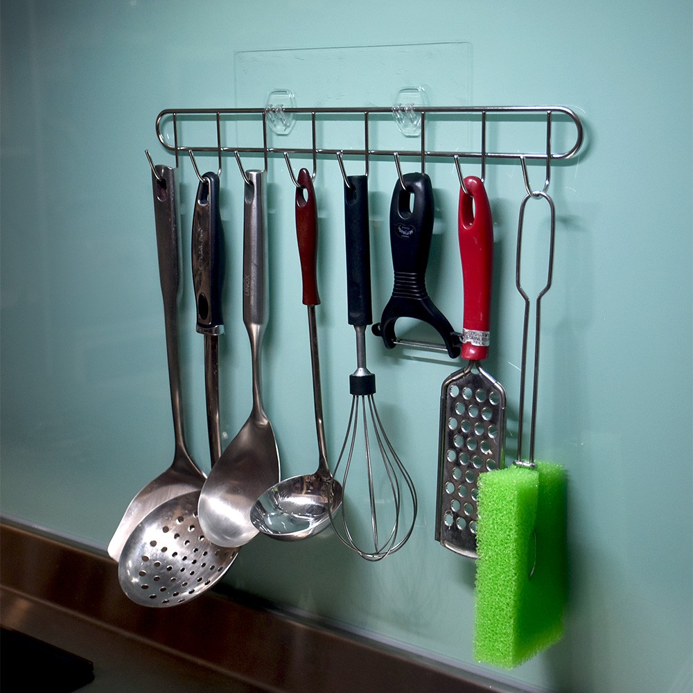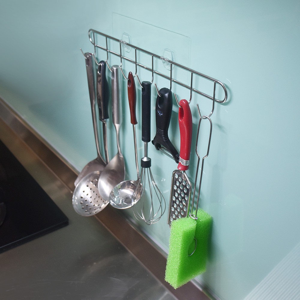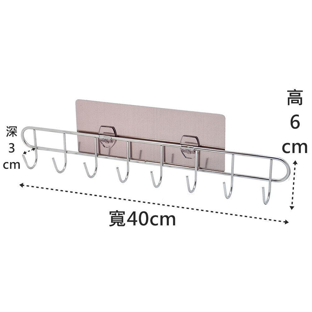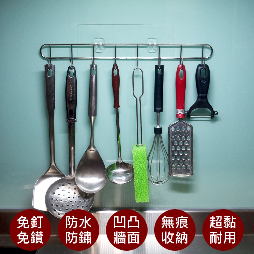 易立家Easy+ 八連勾 304不鏽鋼超級黏膠無痕掛勾 壁掛式廚房廚具餐具收納架 舒適家企業社玫瑰金貼片(包含架子)|透明貼片(包含架子)|銀色貼片(包含架子)HooksEasy+易立家生活館(舒適家企業社)