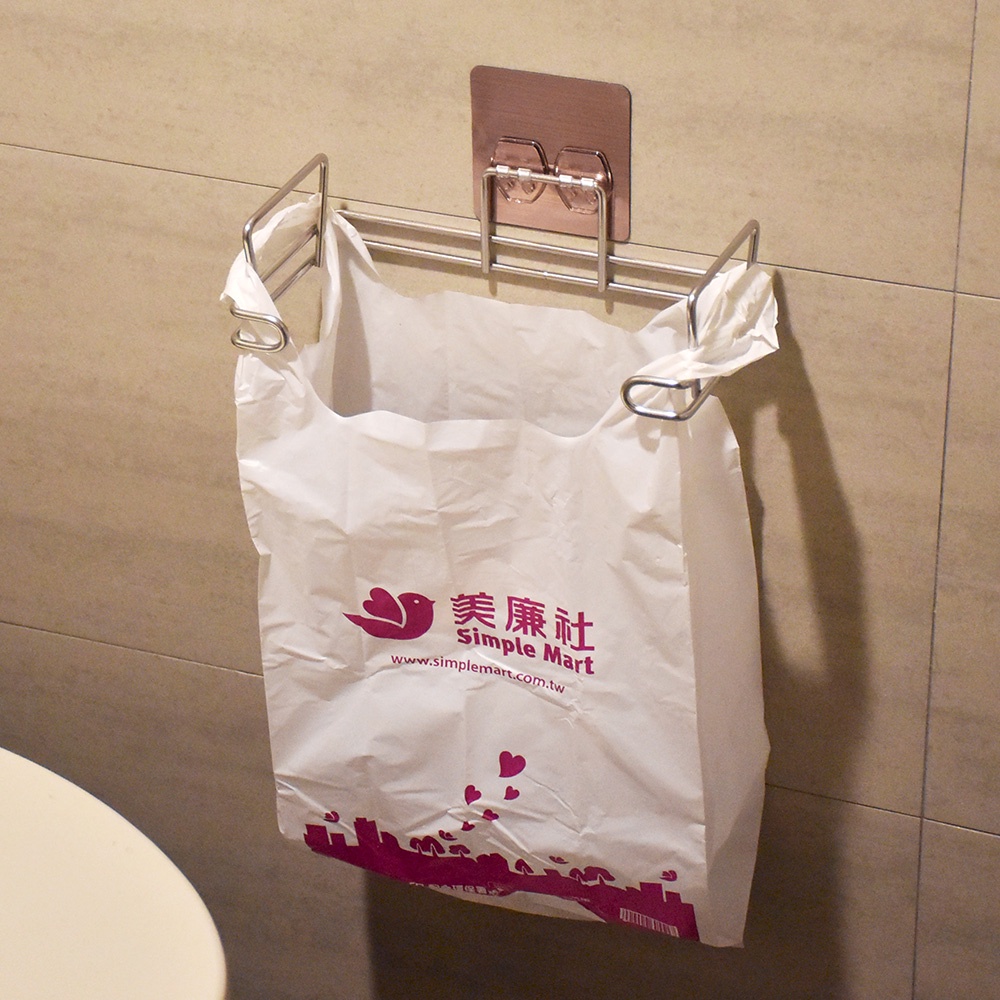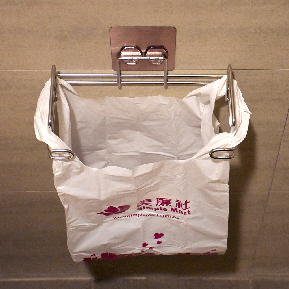 易立家Easy+ 塑膠袋架 垃圾桶 垃圾袋架 廚餘廚房收納 304不鏽鋼超級黏膠無痕掛勾玫瑰金貼片(包含架子)|透明貼片(包含架子)|銀色貼片(包含架子)|彩繪小熊貼片(包含架子)|粉紅貓頭鷹貼片(包含架子)HooksEasy+易立家生活館(舒適家企業社)