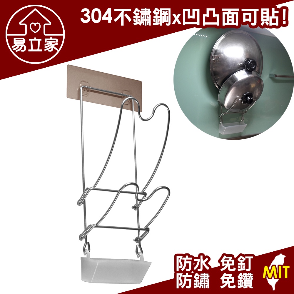 易立家Easy+ 壁掛式鍋蓋架 炒鍋蓋電鍋蓋壁掛架 304不鏽鋼超級黏膠無痕掛勾 廚房收納瀝水架玫瑰金貼片(包含架子)|透明貼片(包含架子)|銀色貼片(包含架子)HooksEasy+易立家生活館(舒適家企業社)