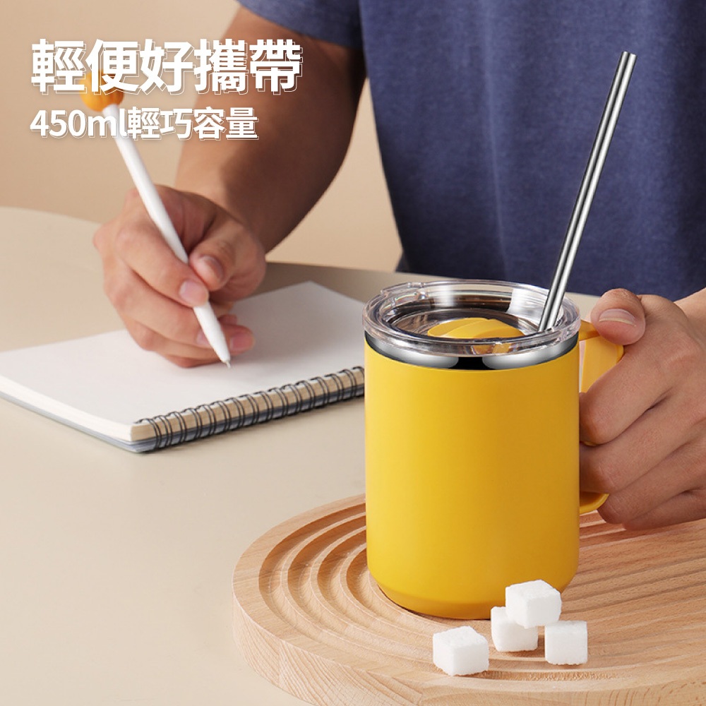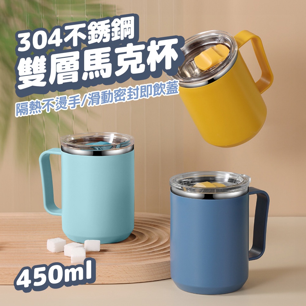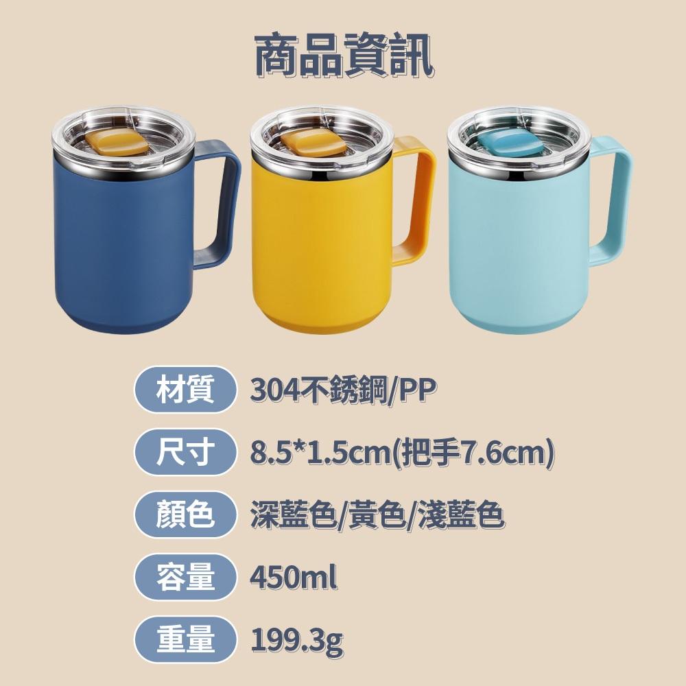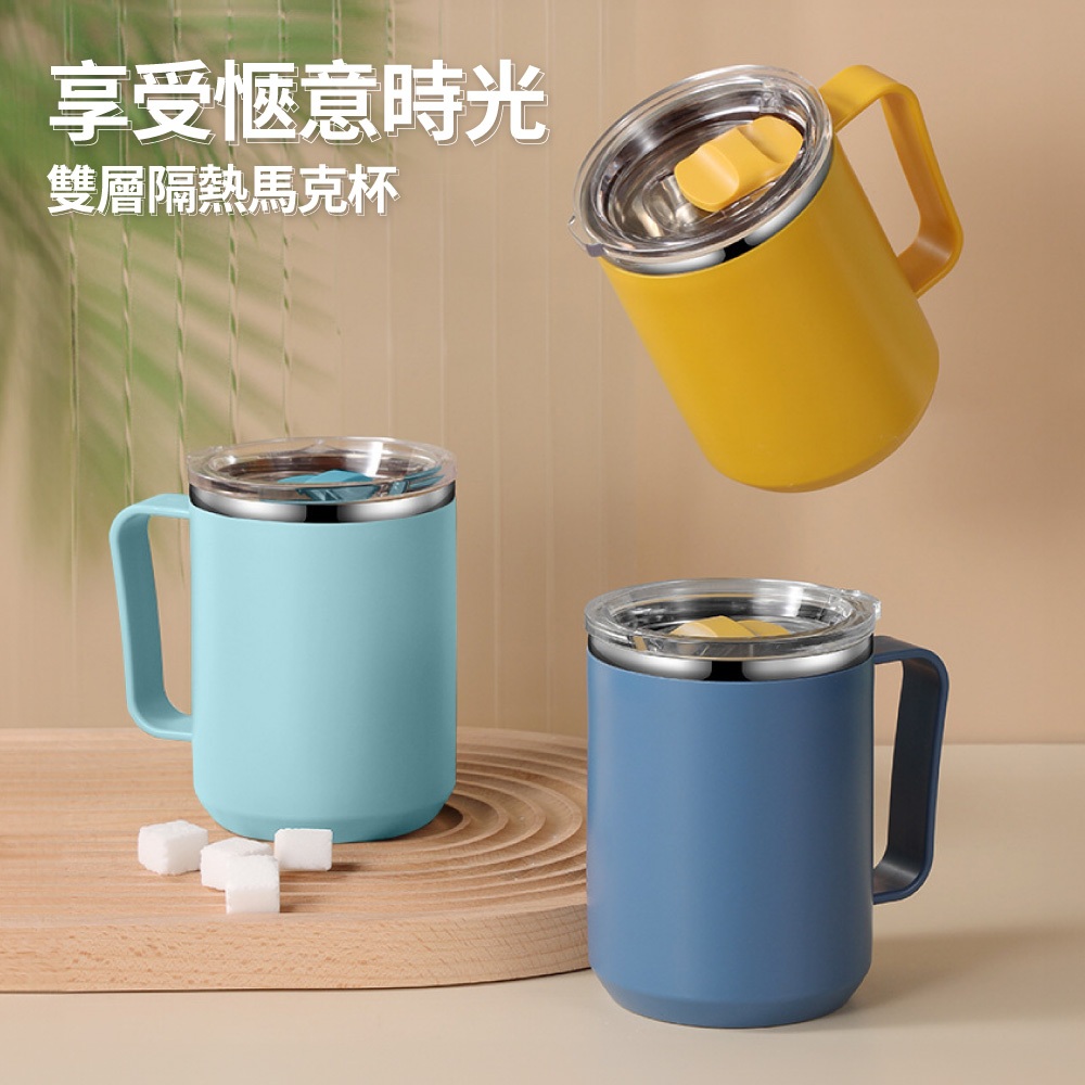 不鏽鋼馬克杯 咖啡杯 保溫杯 馬克杯 隨行杯 附蓋馬克杯 雙層隔熱 環保杯 水杯 茶杯 保溫馬克杯深藍色|黃色|淺藍色Cups, Mugs & GlassesDA量販店