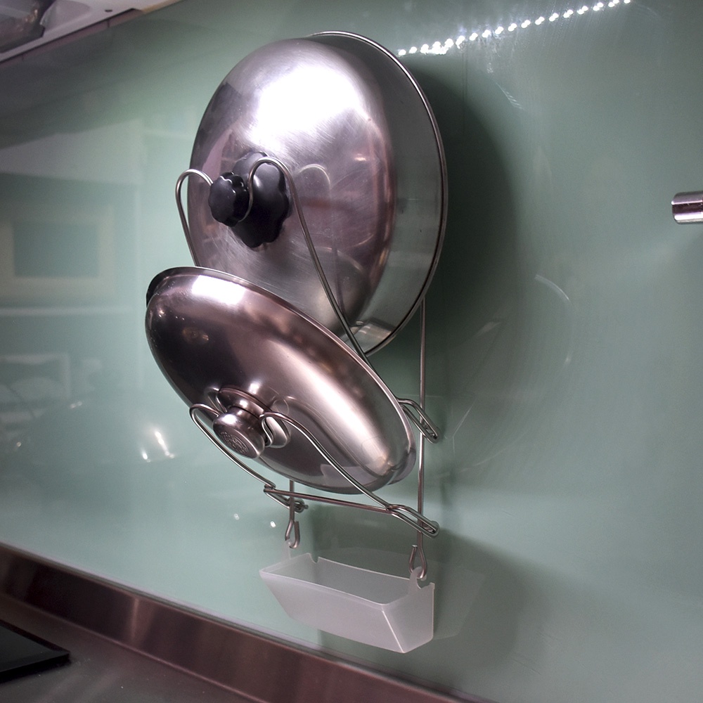 易立家Easy+ 壁掛式鍋蓋架 炒鍋蓋電鍋蓋壁掛架 304不鏽鋼超級黏膠無痕掛勾 廚房收納瀝水架玫瑰金貼片(包含架子)|透明貼片(包含架子)|銀色貼片(包含架子)HooksEasy+易立家生活館(舒適家企業社)