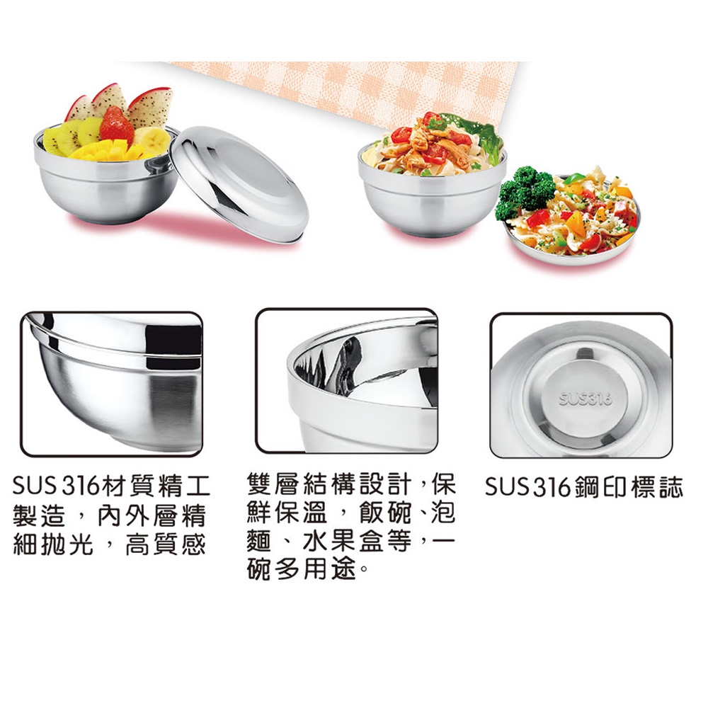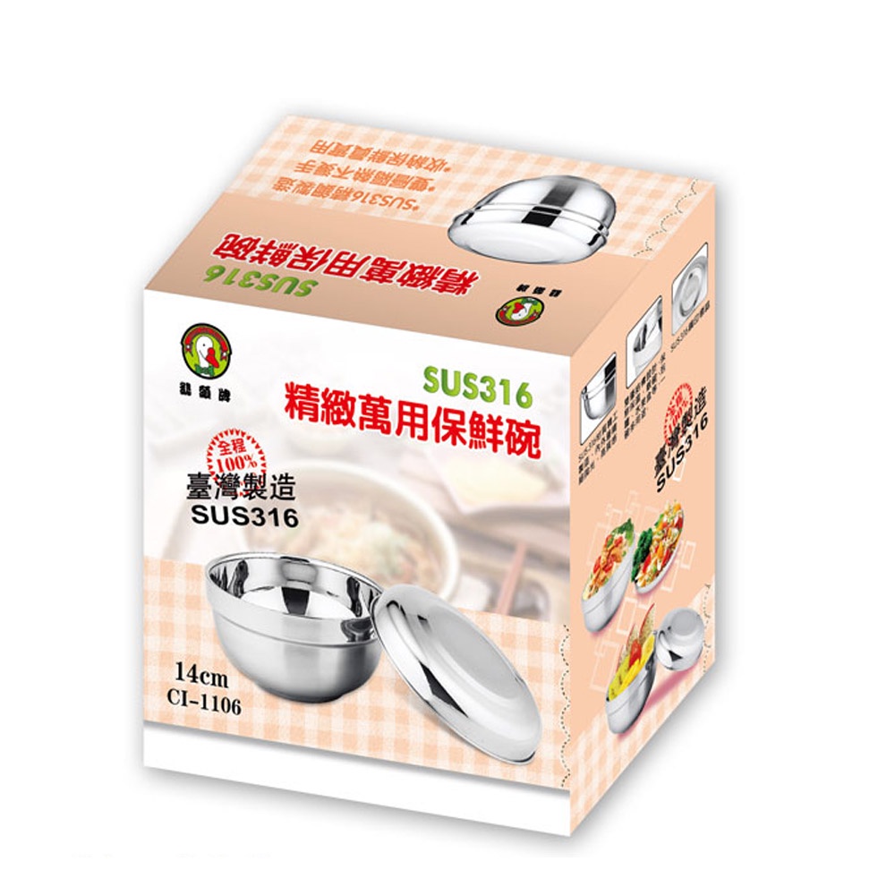 鵝頭牌 316雙層隔熱保鮮點心碗附蓋CI-1106台灣製鵝頭牌 316雙層隔熱保鮮點心碗附蓋CI-1106台灣製BowlsDOLEE 多禮商城