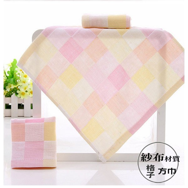 彩色格子紗布小方巾 手帕 雙層紗布手帕【DK大王】