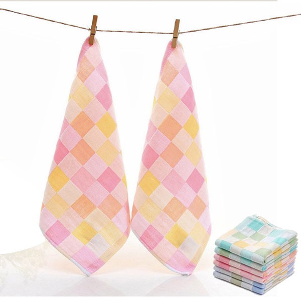 彩色格子紗布小方巾 手帕 雙層紗布手帕【DK大王】粉色/1條|藍綠色系/1條|6條(顏色綜合出貨)Towels & BathrobesDK大王旗艦店