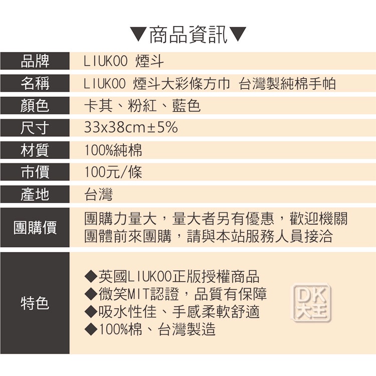 LIUKOO 煙斗 大彩條純棉方巾 純棉吸水手帕 口水巾【DK大王】卡其/1條|粉色/1條|藍色/1條Towels & BathrobesDK大王旗艦店
