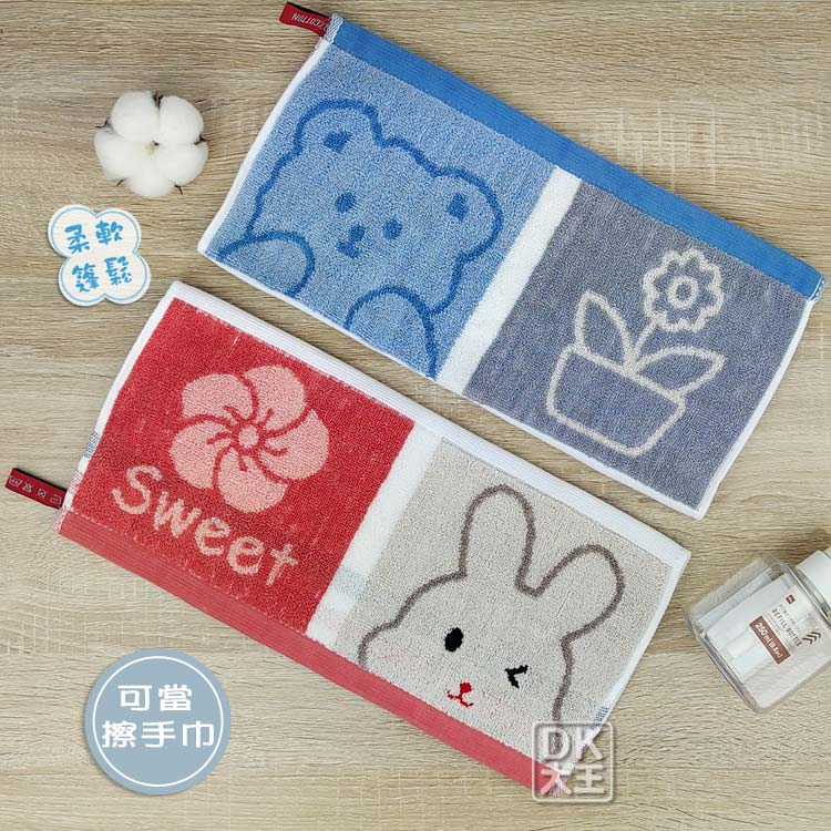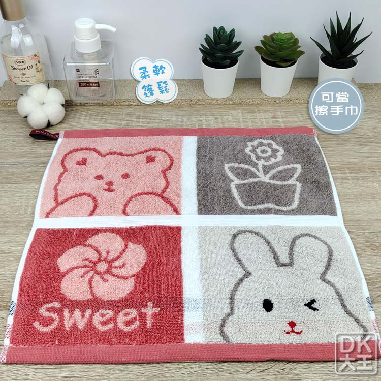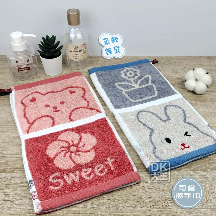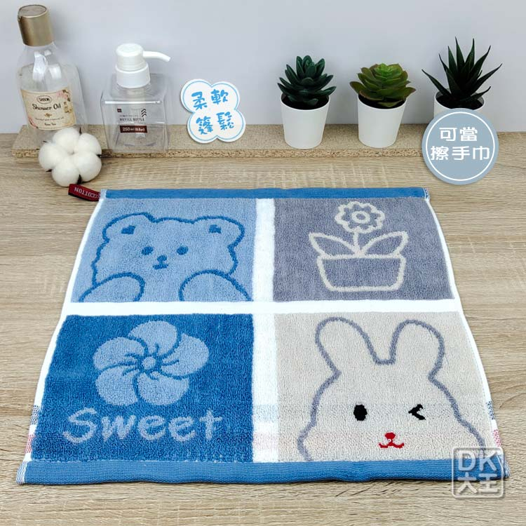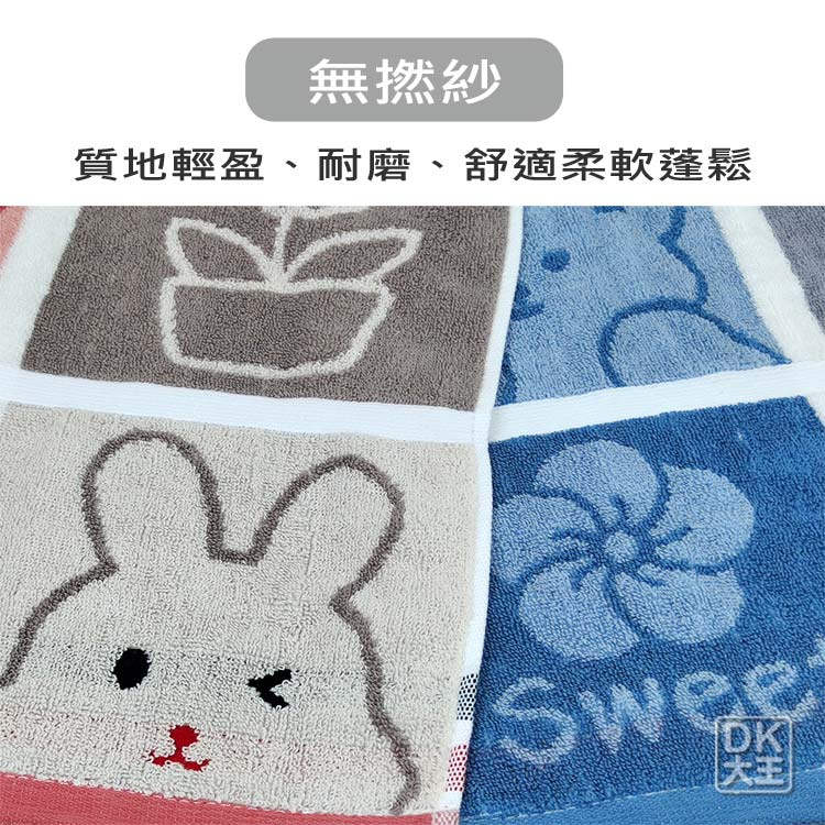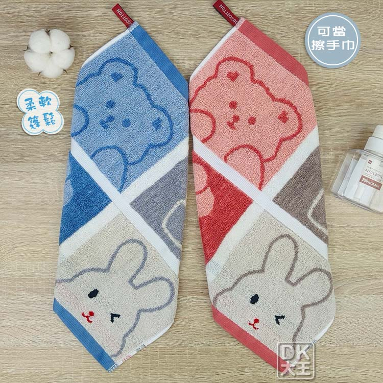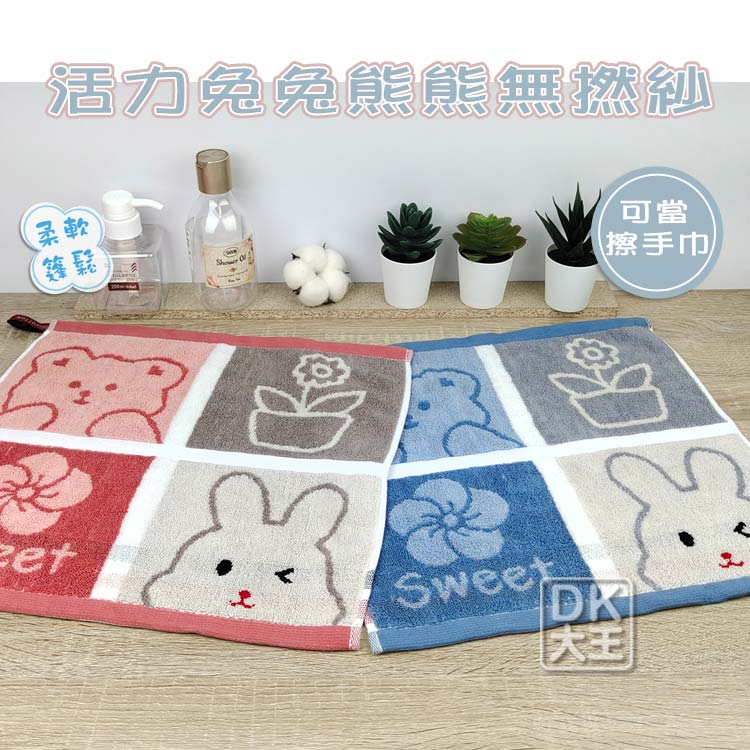 無撚紗 活力兔兔熊熊方巾 柔軟蓬鬆 洗臉巾 擦手巾【DK大王】橘粉色/1條|藍色/1條Towels & BathrobesDK大王旗艦店