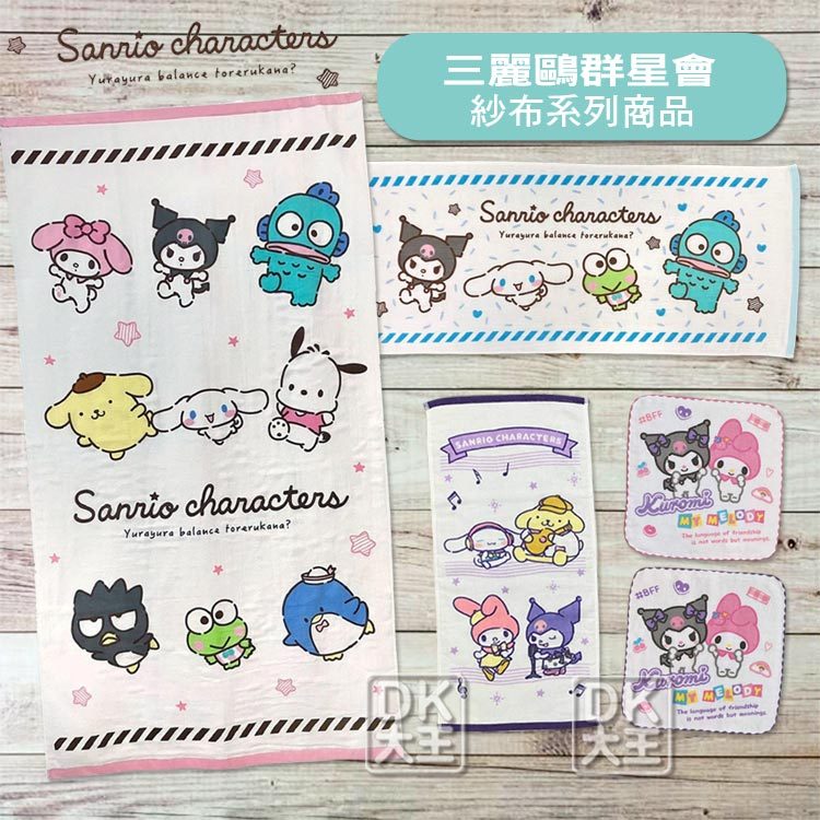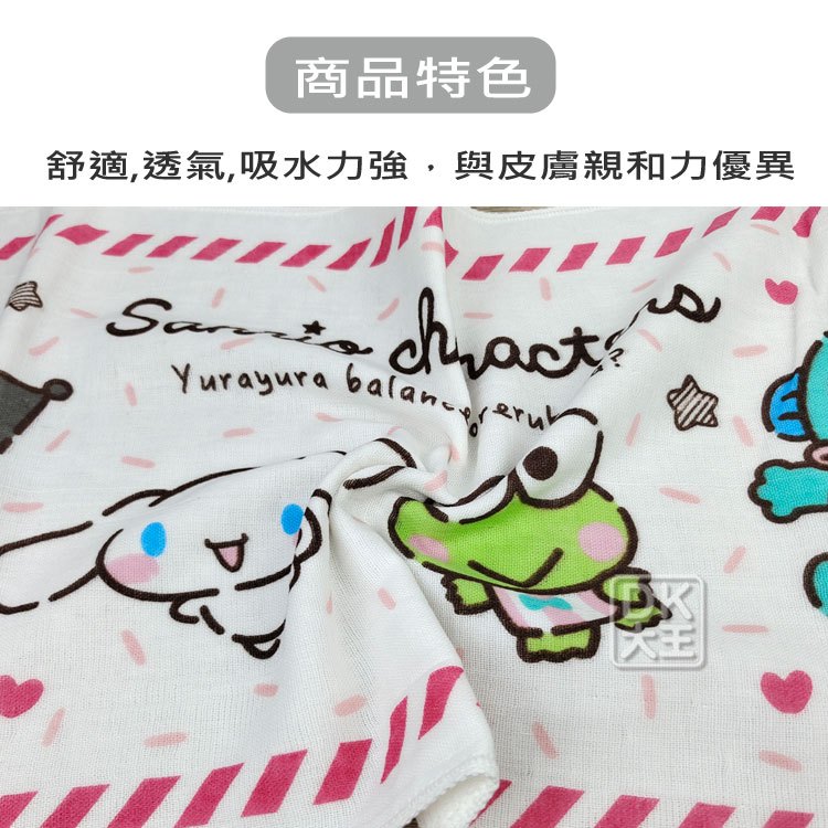 三麗鷗 大集合 紗布毛巾 紗布童巾 紗布方巾 紗布手帕 酷洛米/大耳狗/人魚漢頓/大眼蛙 日本正版授權【DK大王】(紗布-童巾)粉色邊/1條|(紗布-童巾)紫色邊/1條|(紗布-毛巾)粉色邊/1條|(紗布-毛巾)藍色邊/1條|(紗布-方巾)粉色邊/1條|(紗布-方巾)紫色邊/1條|(紗布-手帕)條紋粉色/1條|(紗布-手帕)條紋黃色/1條|(紗布-手帕)條紋藍色/1條Towels & BathrobesDK大王旗艦店
