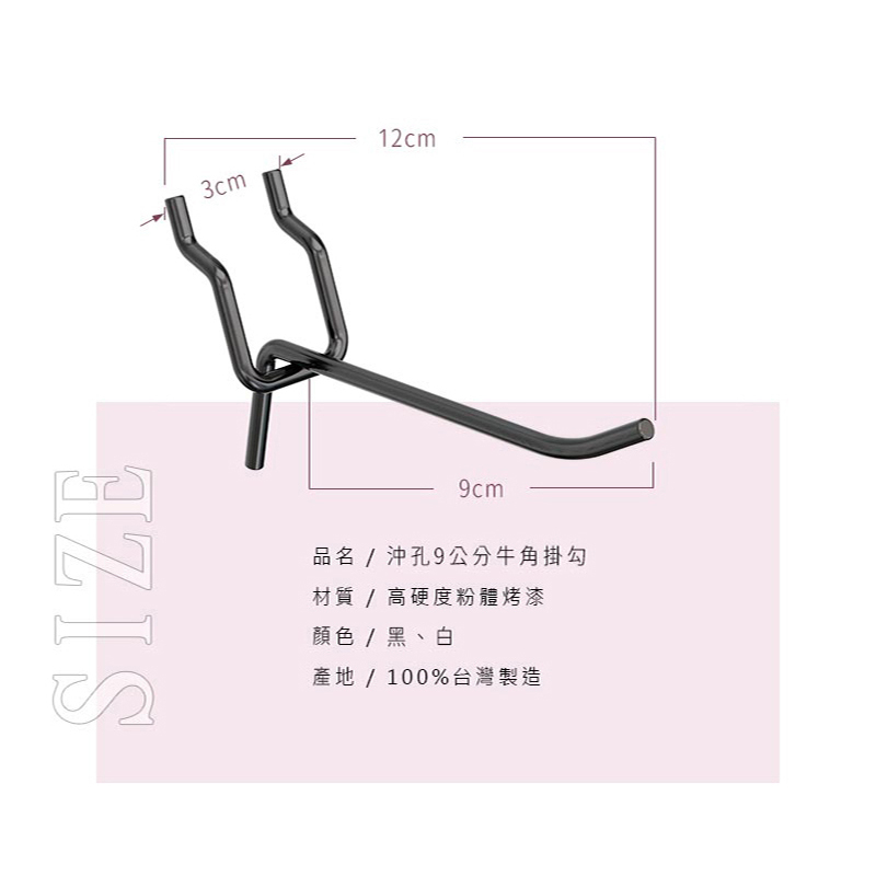 dayneeds 沖孔專用9公分牛角掛勾 鐵勾 貨架掛勾 掛勾 配件類 沖孔配件 掛勾 沖孔掛勾黑色|白色Hooksdayneeds收納生活館