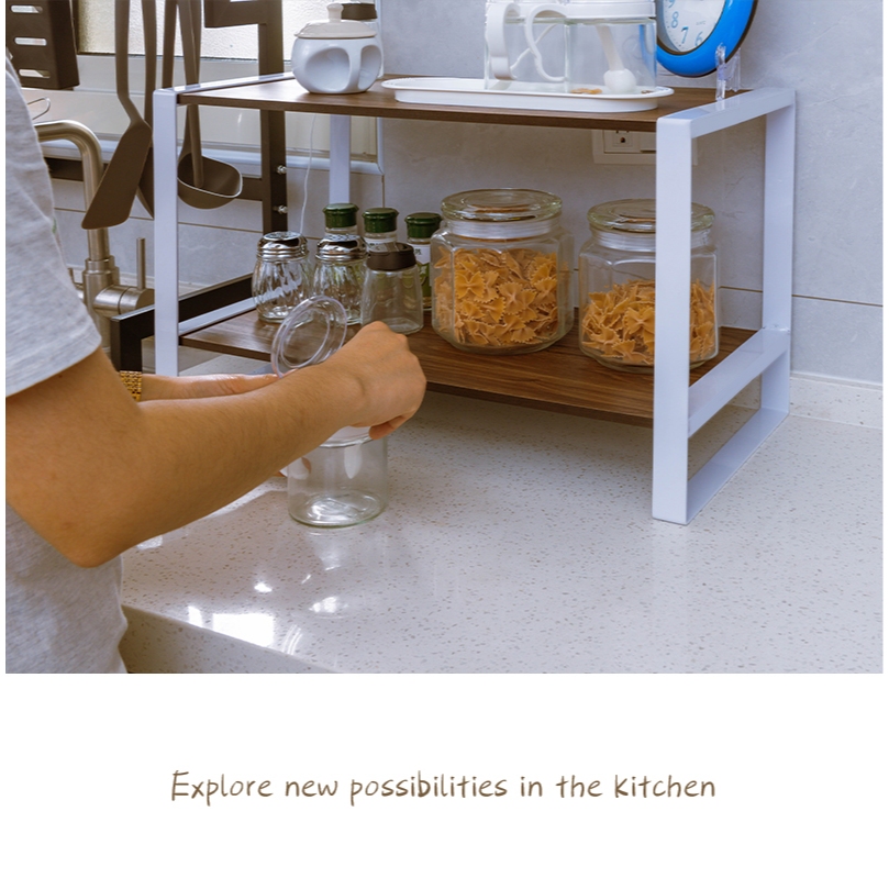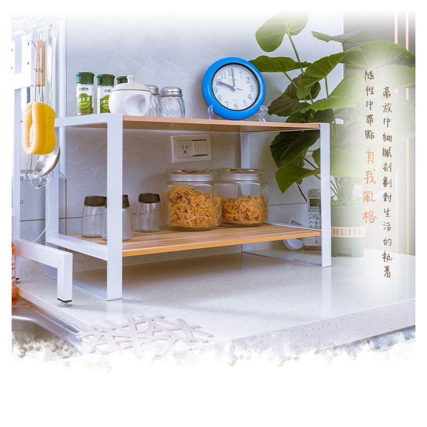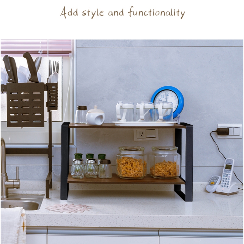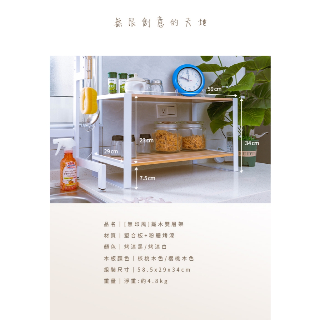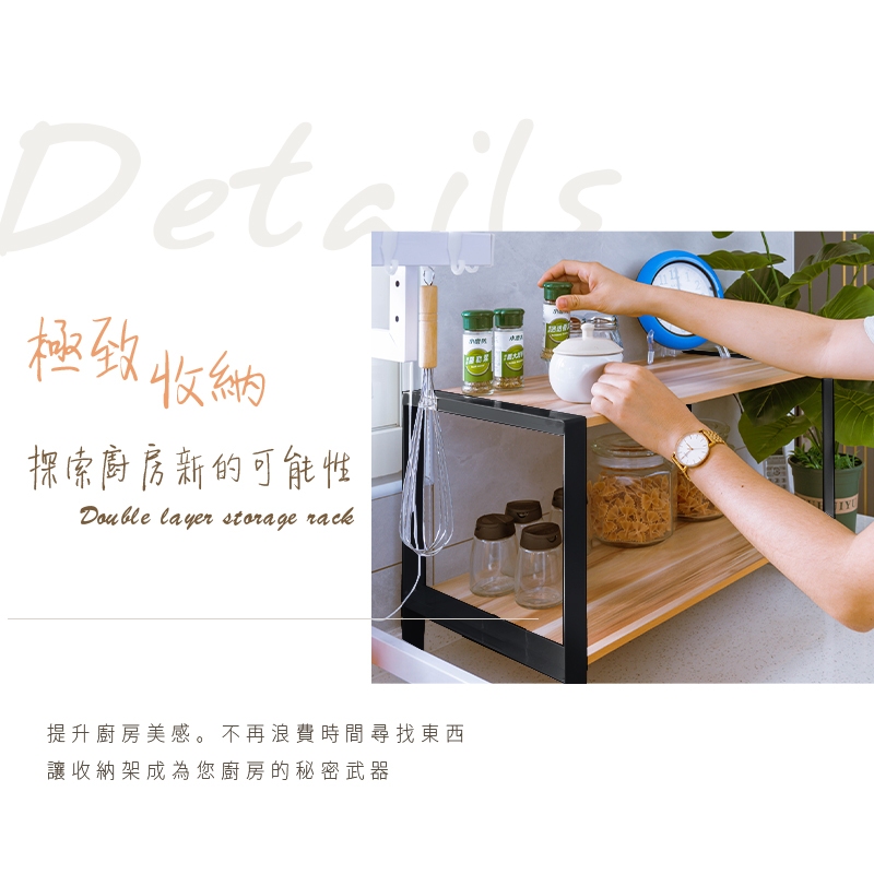 dayneeds 無印風鐵木雙層架 四款可選 /廚房收納/雙層置物架/木紋/鐵藝/調味罐收納/多功能收納黑框+櫻桃木|黑框+核桃木|白框+櫻桃木|白框+核桃木Desk Organizersdayneeds收納生活館
