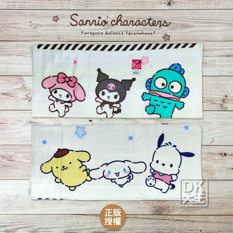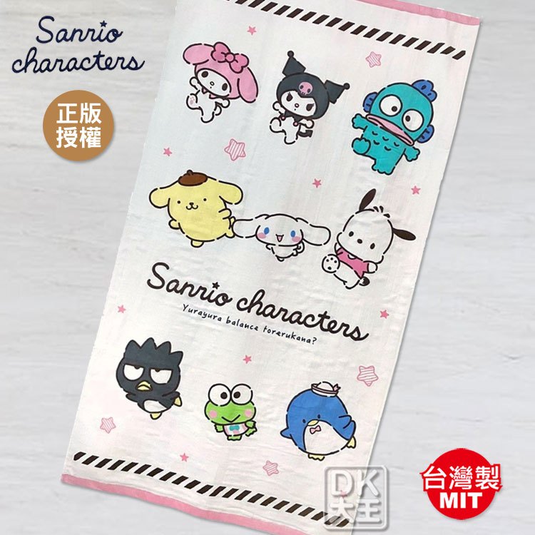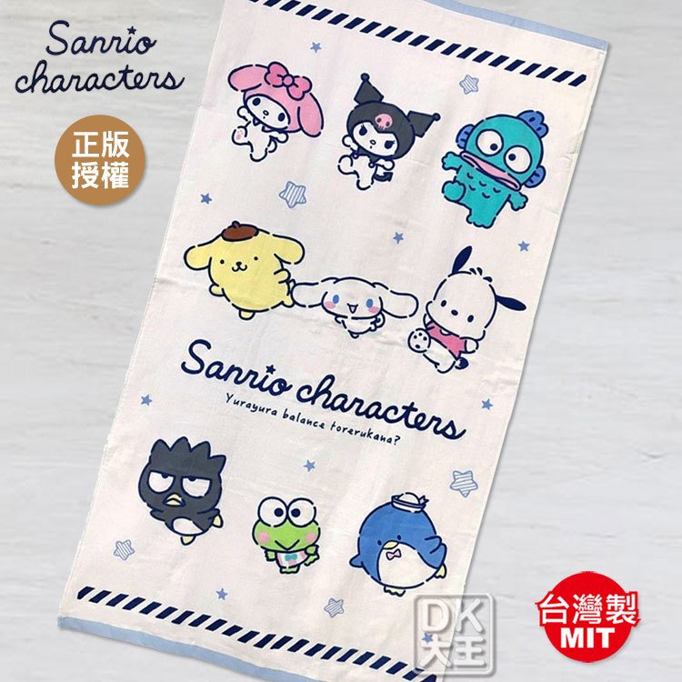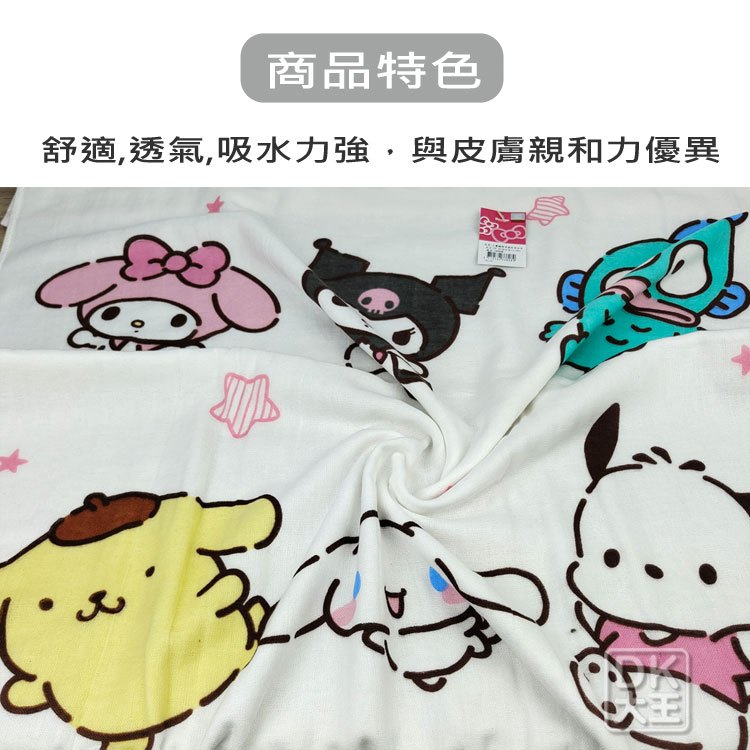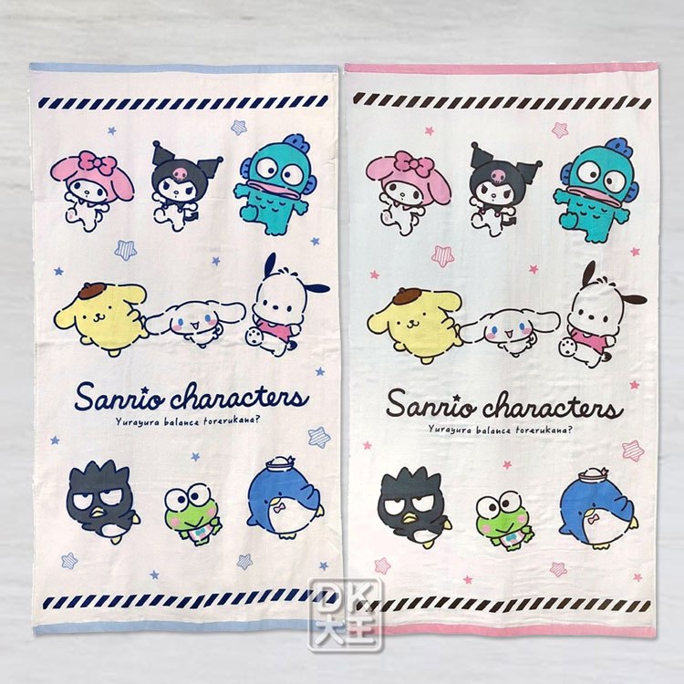 三麗鷗 大集合 紗布浴巾 酷洛米/美樂蒂/人魚漢頓/布丁狗/大耳狗/酷企鵝/大眼蛙 日本正版授權【DK大王】粉色邊/1條|藍色邊/1條Towels & BathrobesDK大王旗艦店
