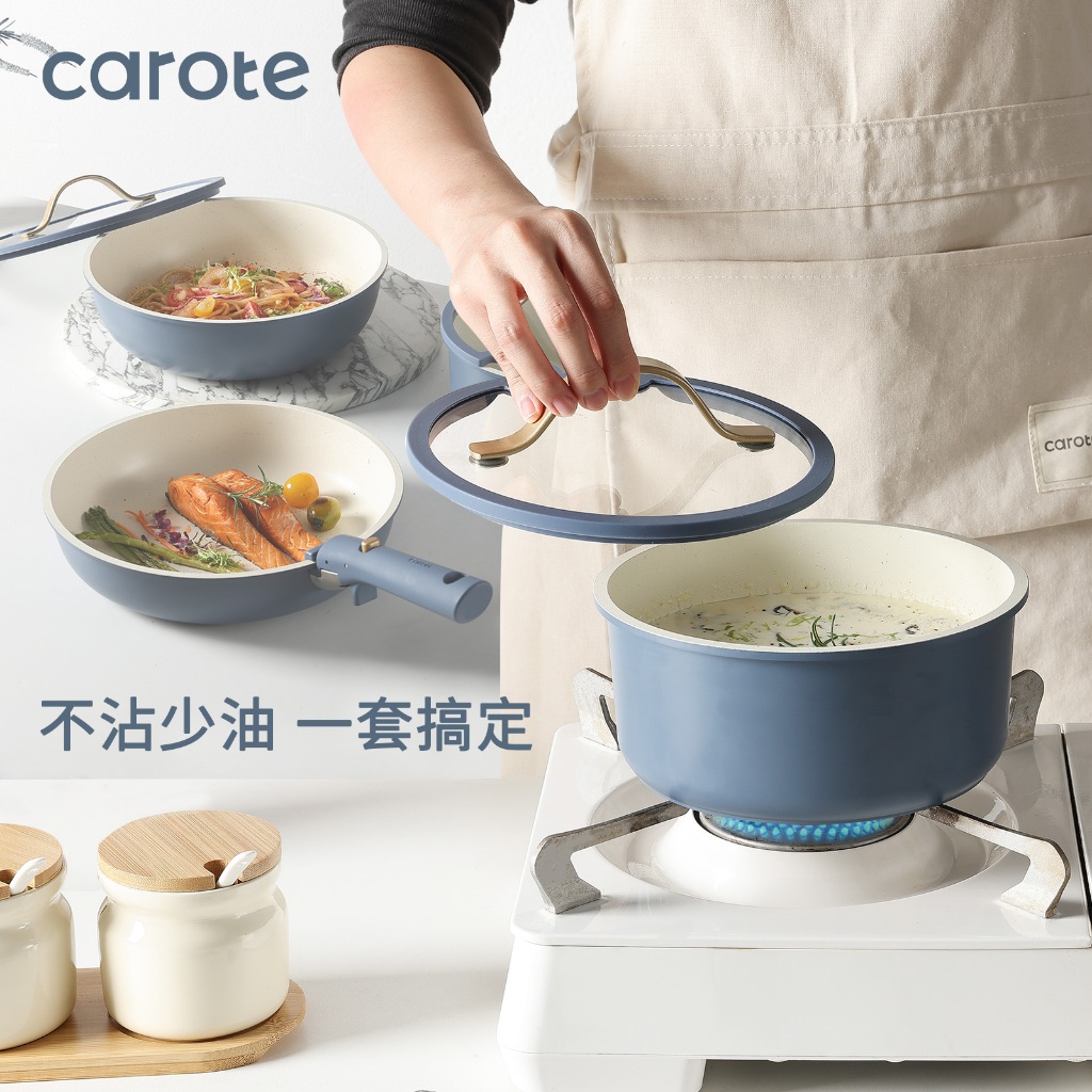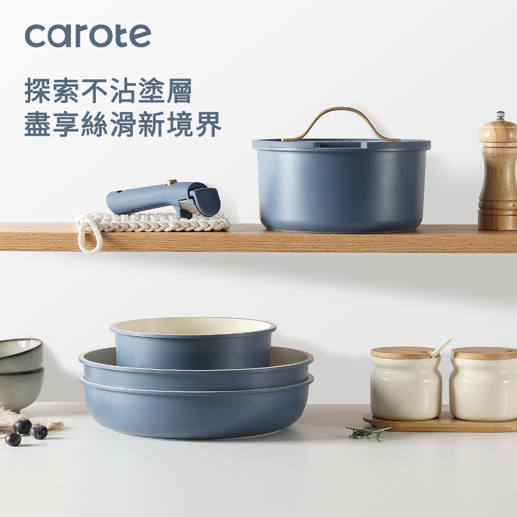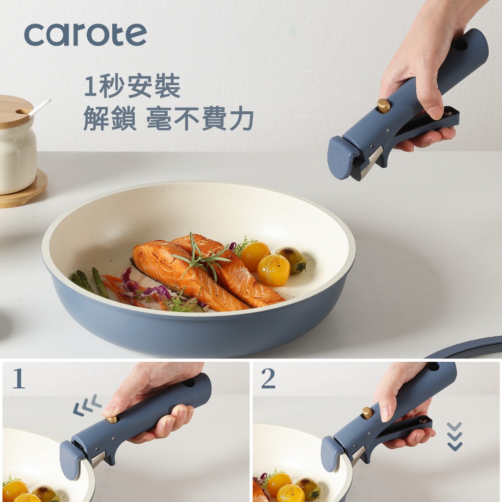 Carote 麥飯石不沾鍋可拆卸鍋具套裝5&10件組可拆式手把+平底鍋+煎炒鍋+奶鍋+蓋不含PFOA電磁爐適用可拆卸鍋具4鍋10件組|可拆式鍋具2鍋5件組PansCAROTE