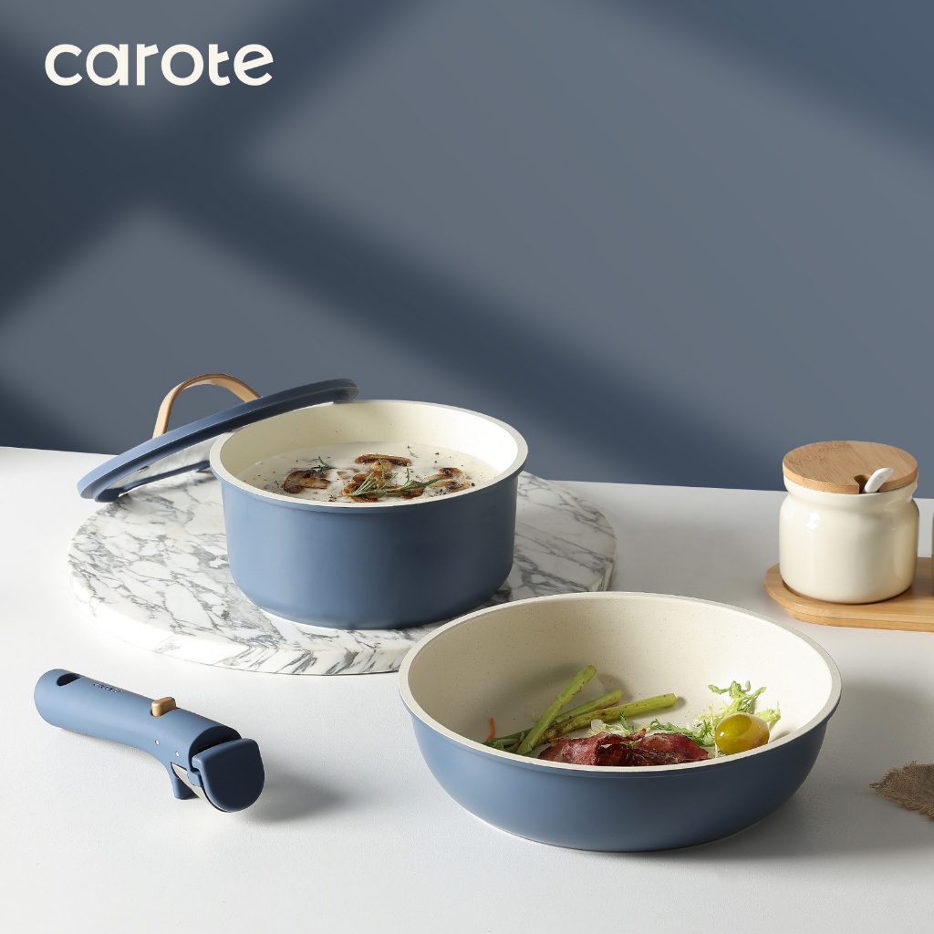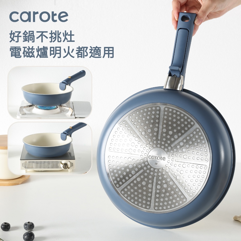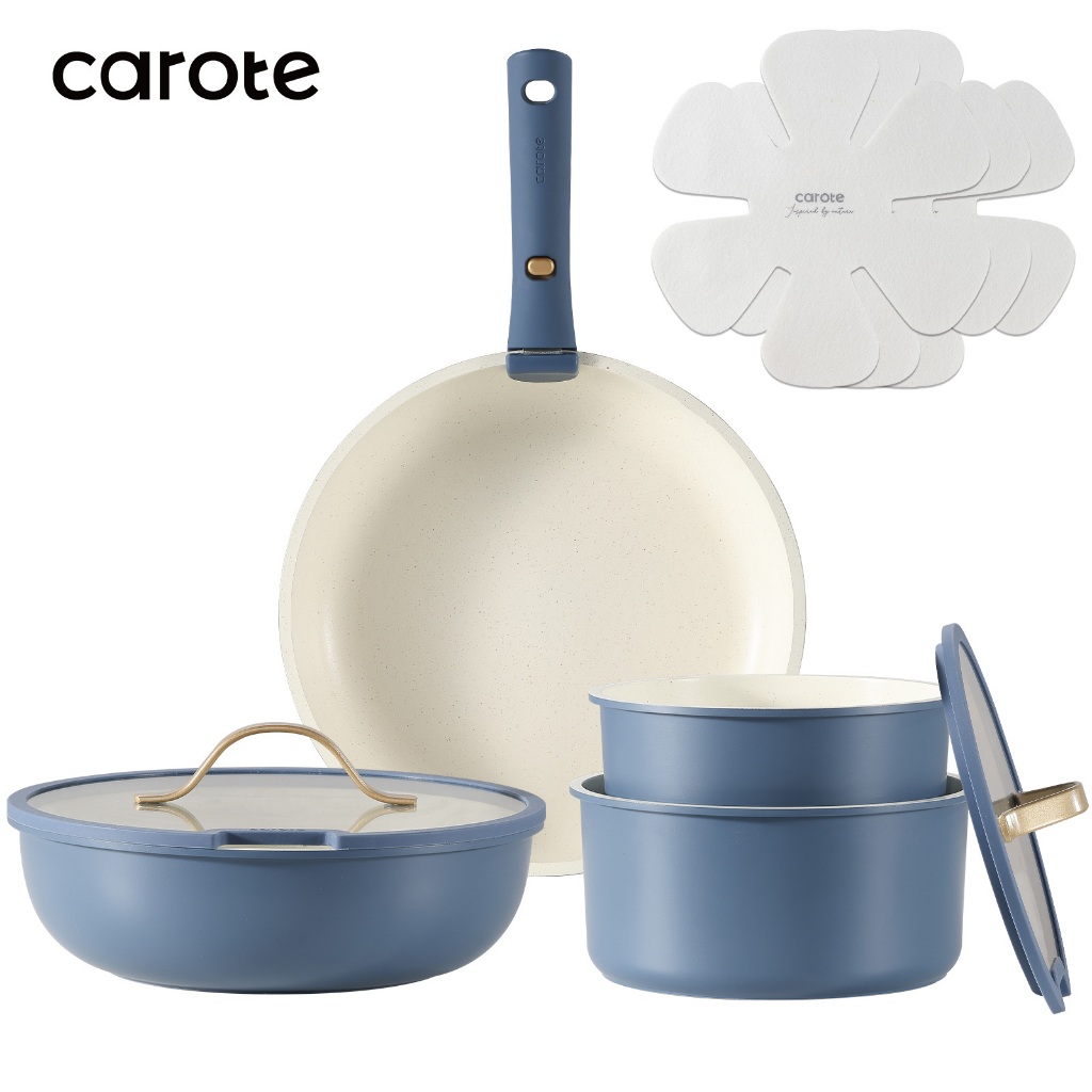 Carote 麥飯石不沾鍋可拆卸鍋具套裝5&10件組可拆式手把+平底鍋+煎炒鍋+奶鍋+蓋不含PFOA電磁爐適用可拆卸鍋具4鍋10件組|可拆式鍋具2鍋5件組PansCAROTE