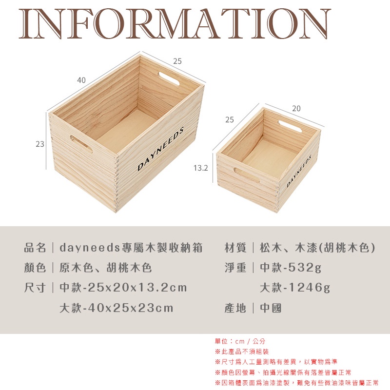 dayneeds專屬木製 收納箱 兩色可選 木盒 可提式 收納盒 松木盒 飾品收納 儲物收納 櫥窗展示 原木 置物原木色(中款)|胡桃木色(中款)|原木色(大款)|胡桃木色(大款)|原木色(中+大)二入組|胡桃木色(中+大)二入組Wardrobe Organizersdayneeds收納生活館