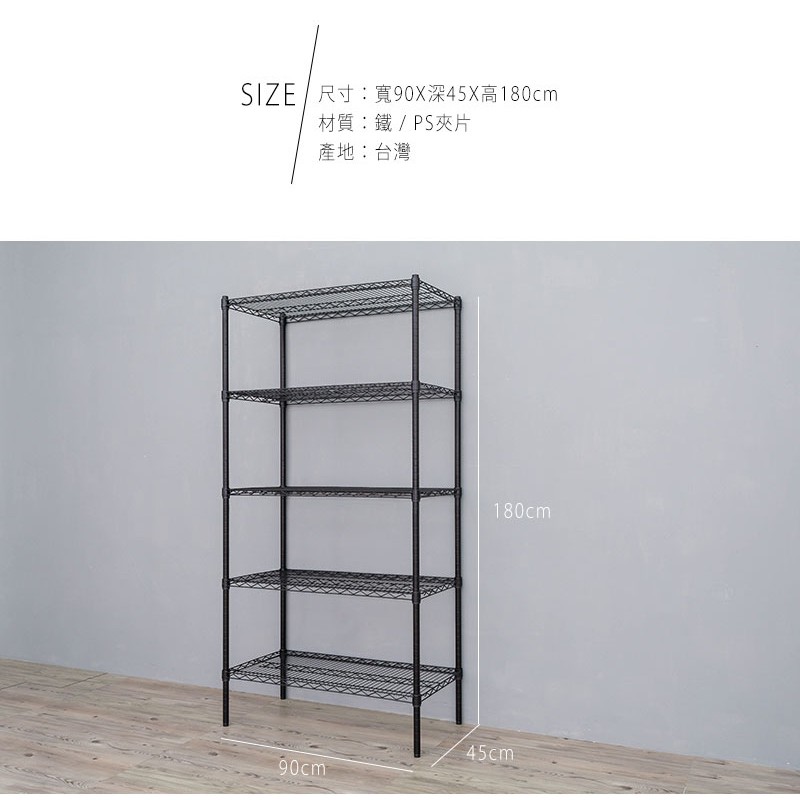 dayneeds 荷重型五層置物架90x45x180公分(烤漆) 鐵力士架 收納架 廚房架 置物櫃烤漆黑|烤漆白Shelves & Racksdayneeds收納生活館