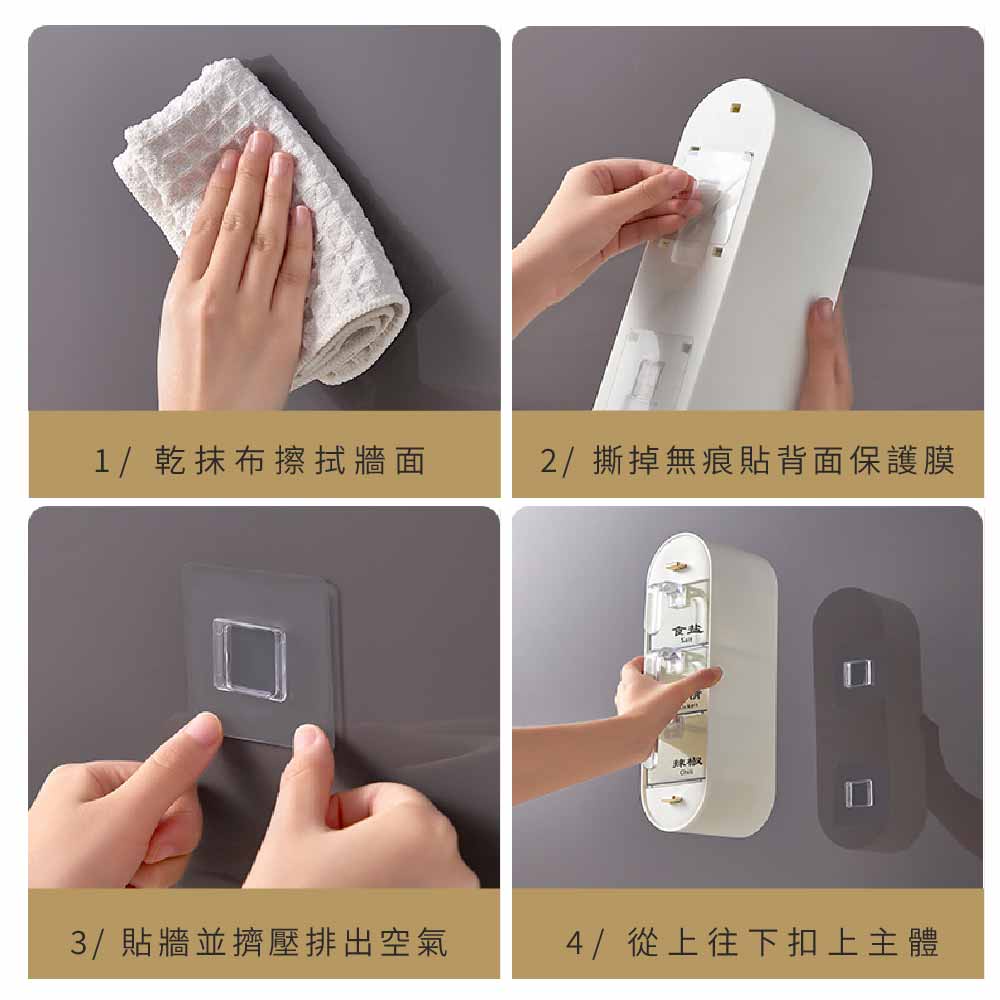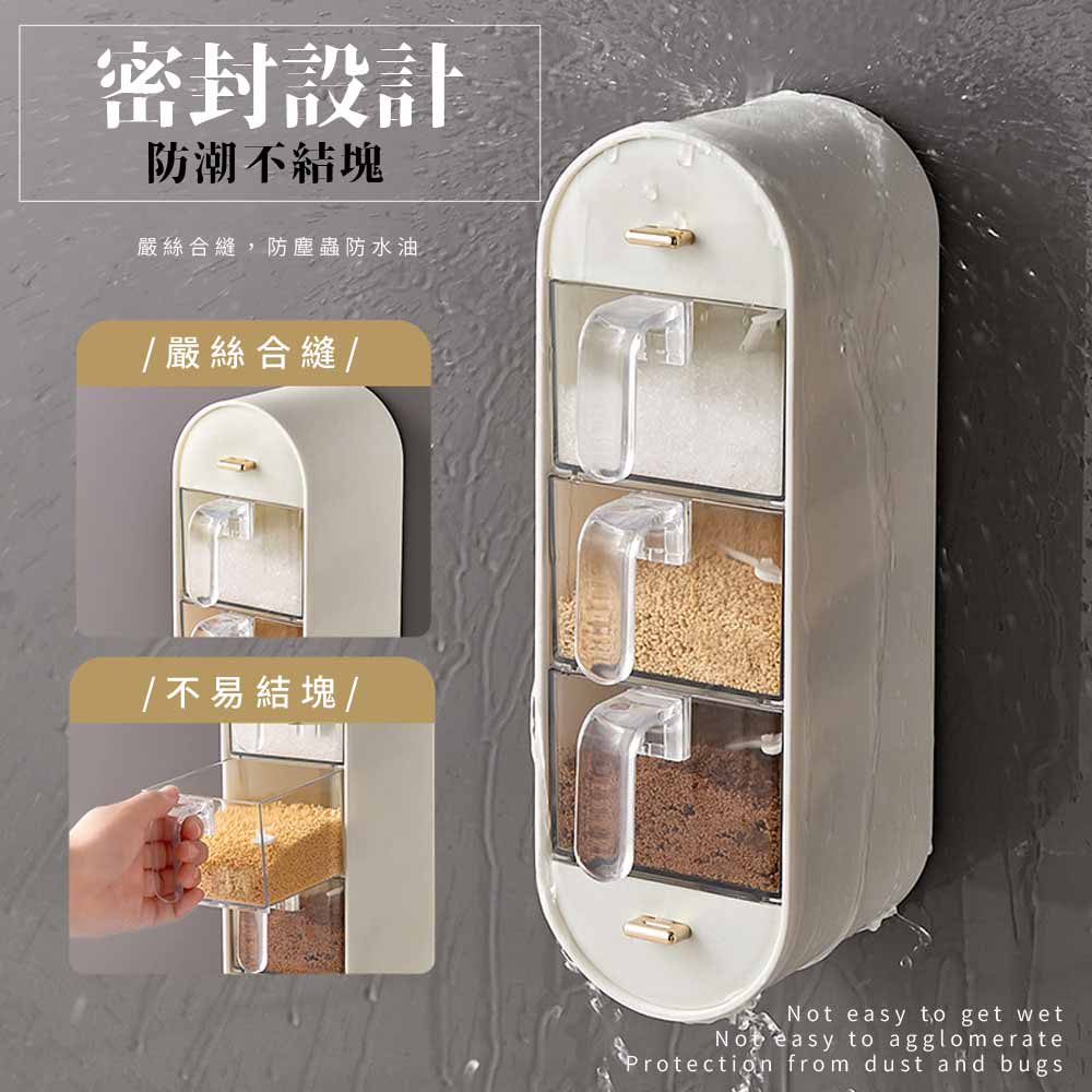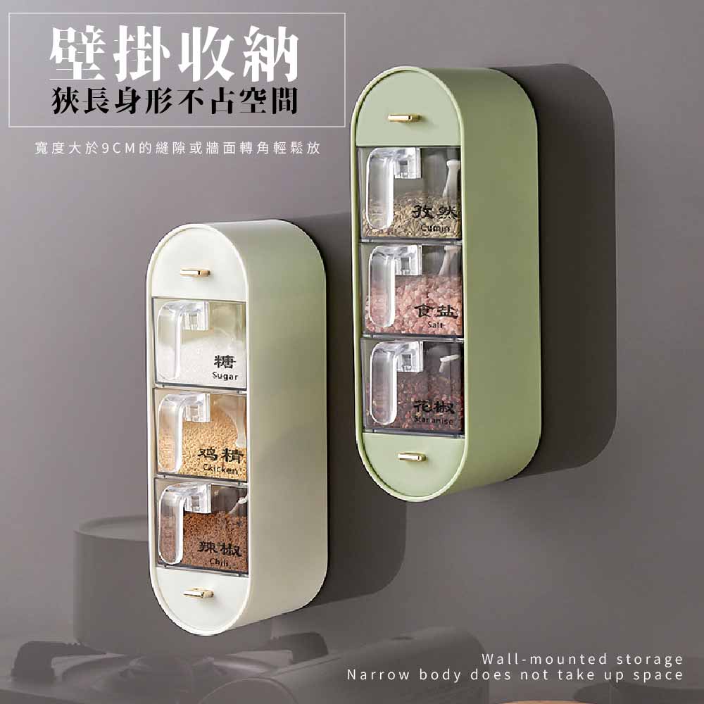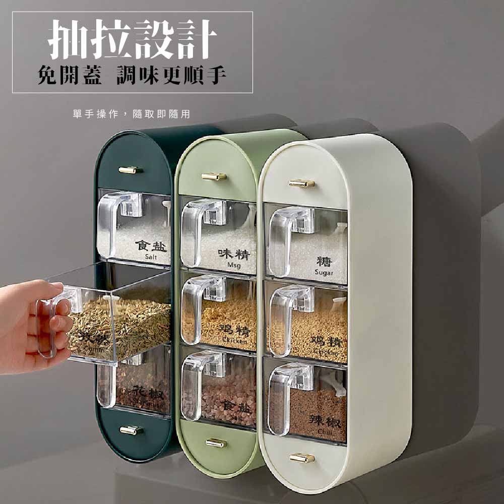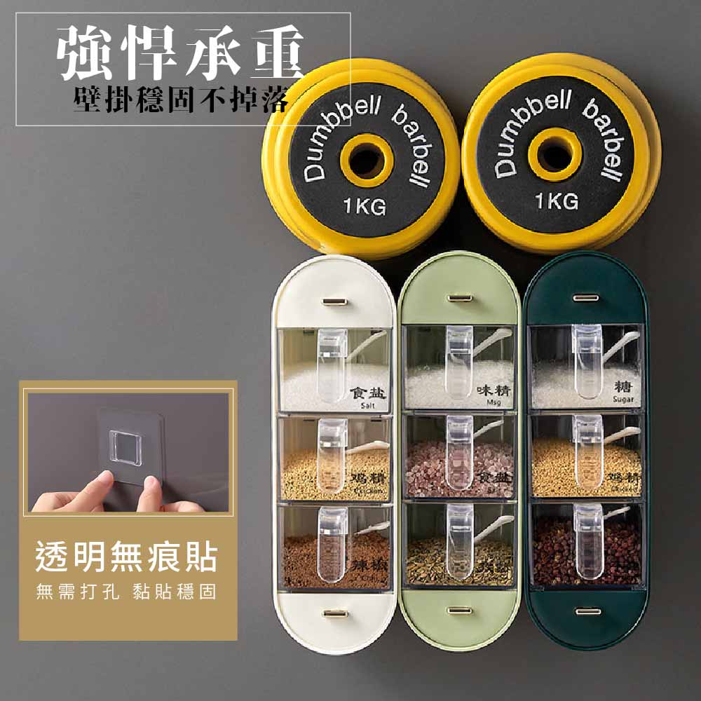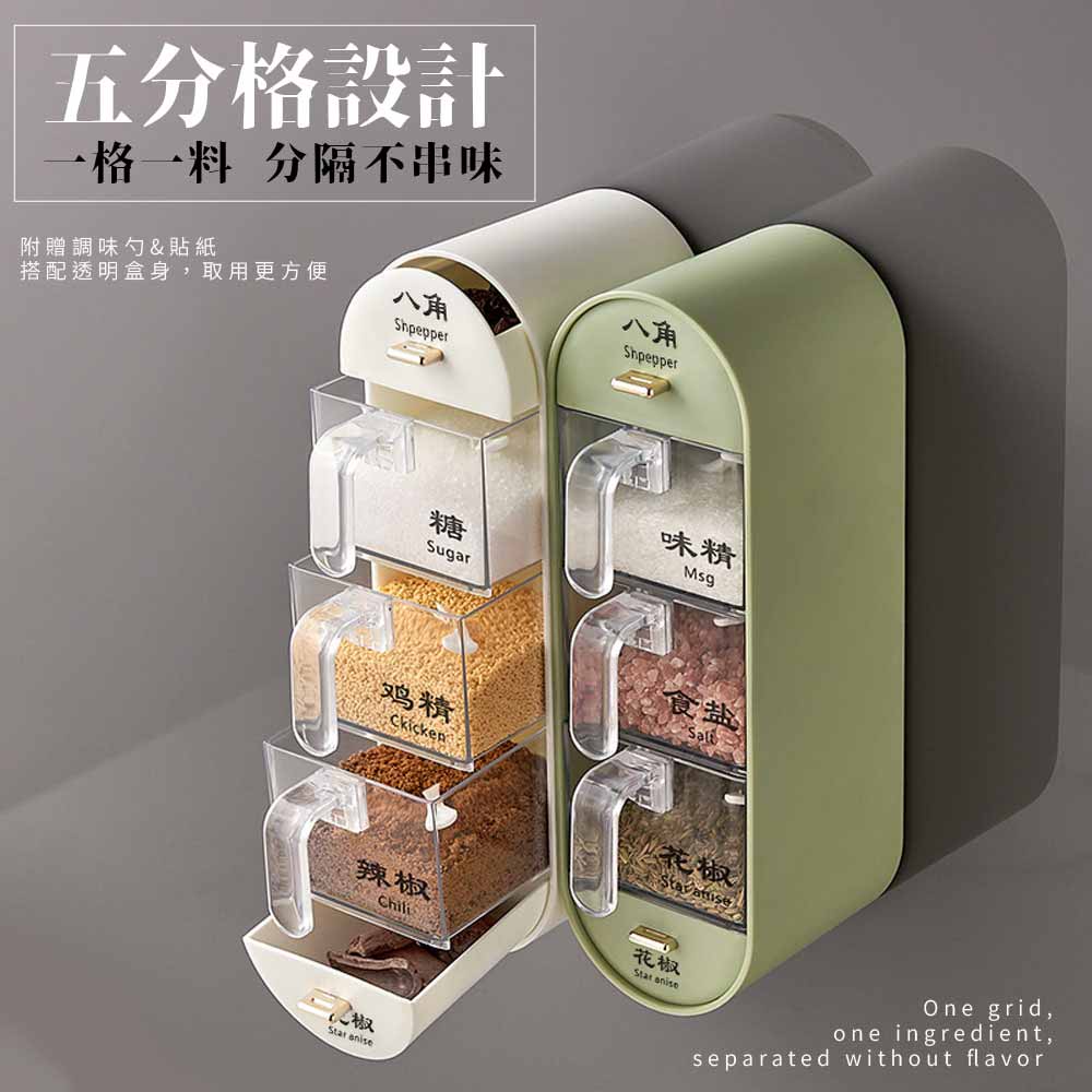 【FL生活+】無痕壁掛3+2多格調味盒 附調味勺 調味料收納盒 調味料收納架 調味料收納 調味料架 調味料盒深綠色|白色Spatulas & Cooking TweezersFL生活+ 官方直營旗艦店