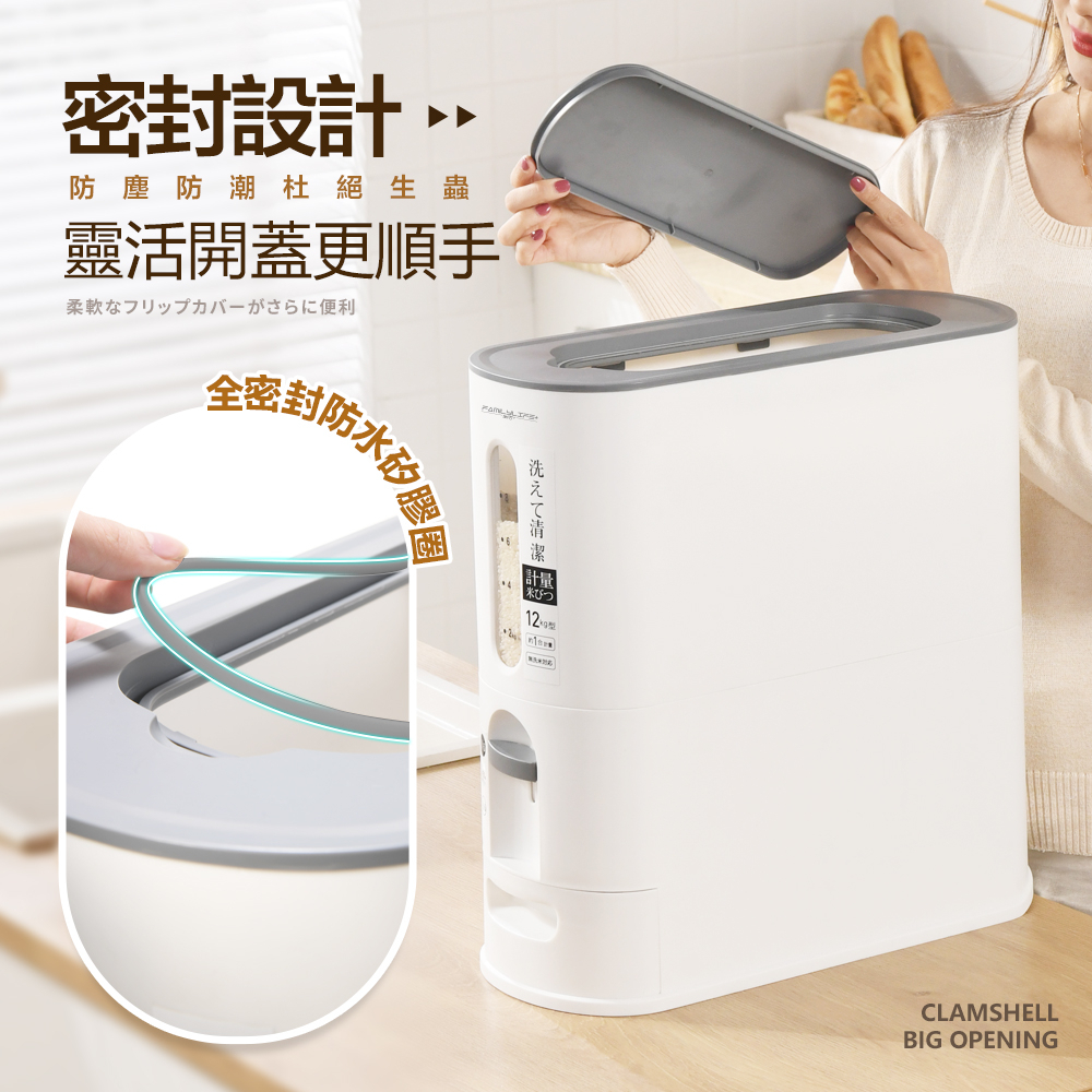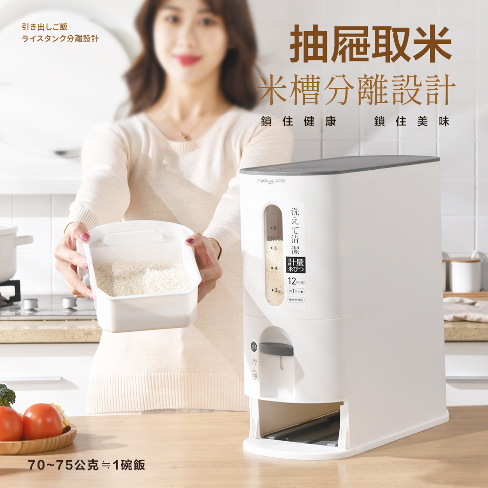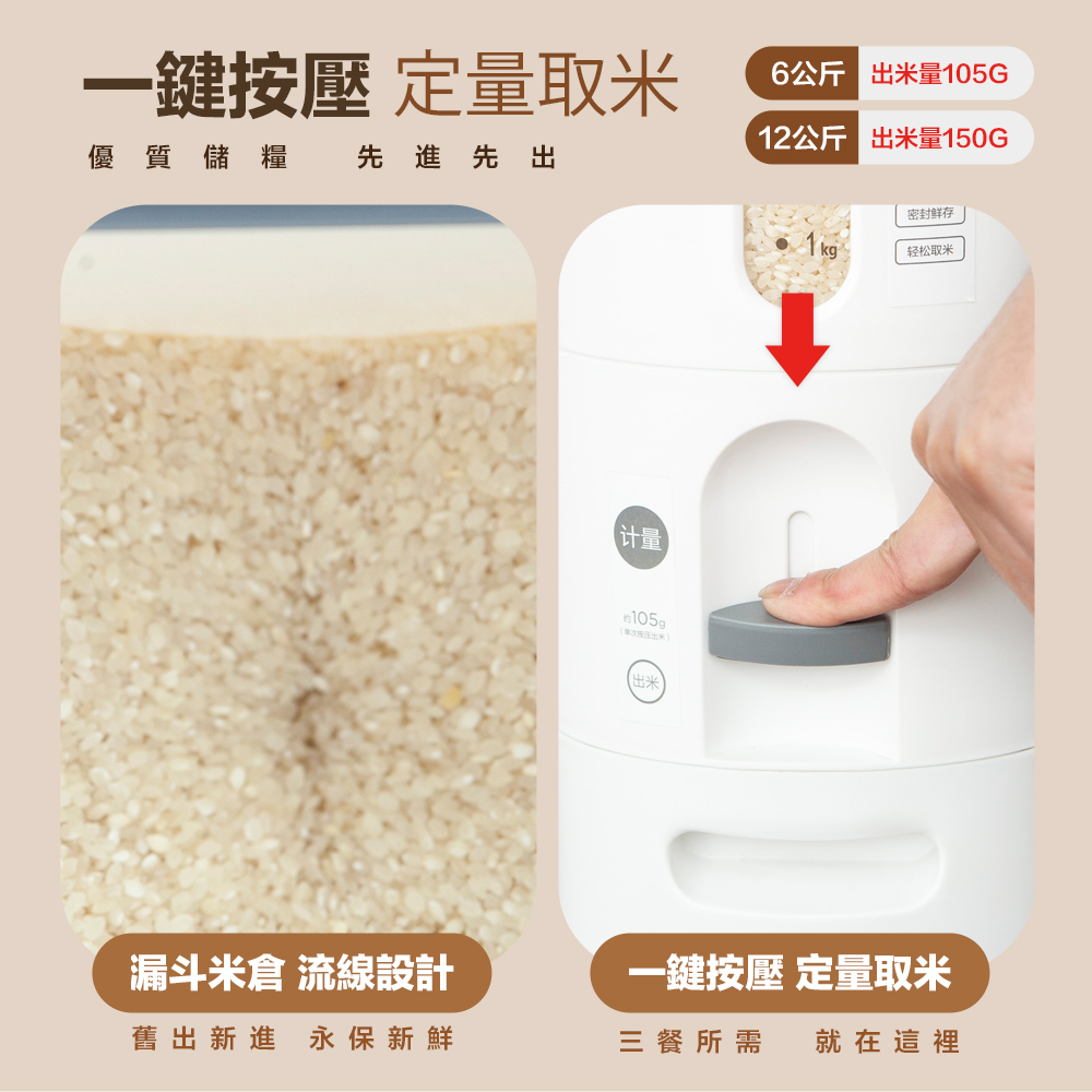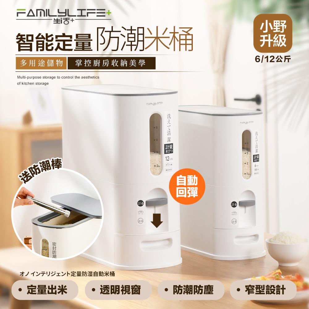 【FL生活+】小野智能定量防潮自動回彈出米桶 儲米桶 儲米箱 儲米罐 米箱 裝米桶 飼料桶 防潮米桶6公斤(超取限1組)|12公斤(只限宅配)Food StorageFL生活+ 官方直營旗艦店