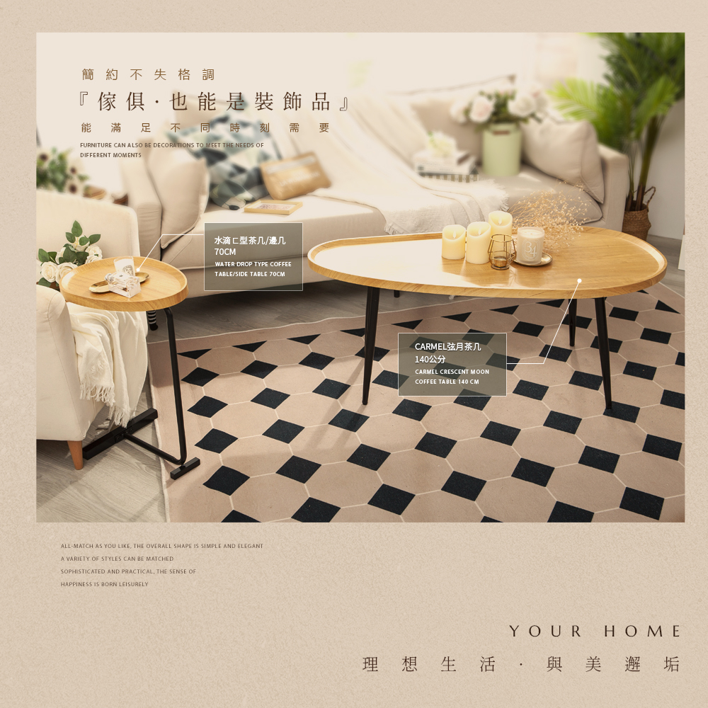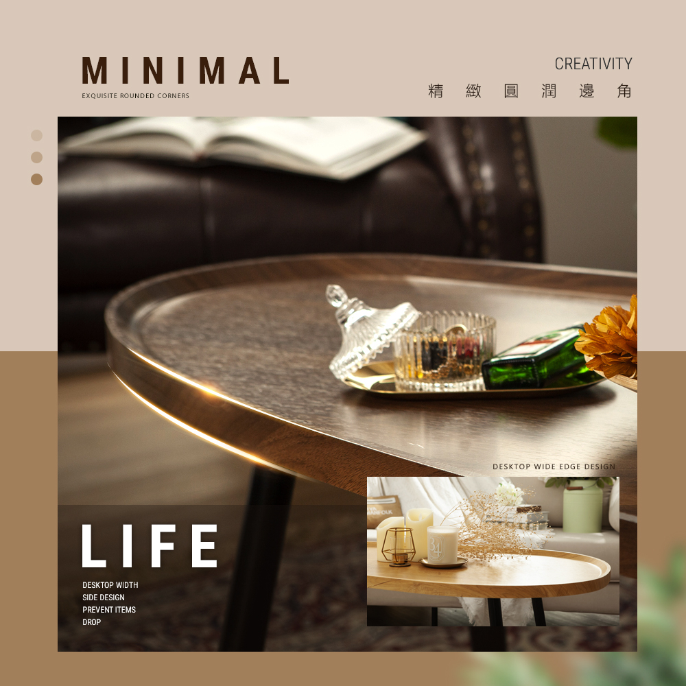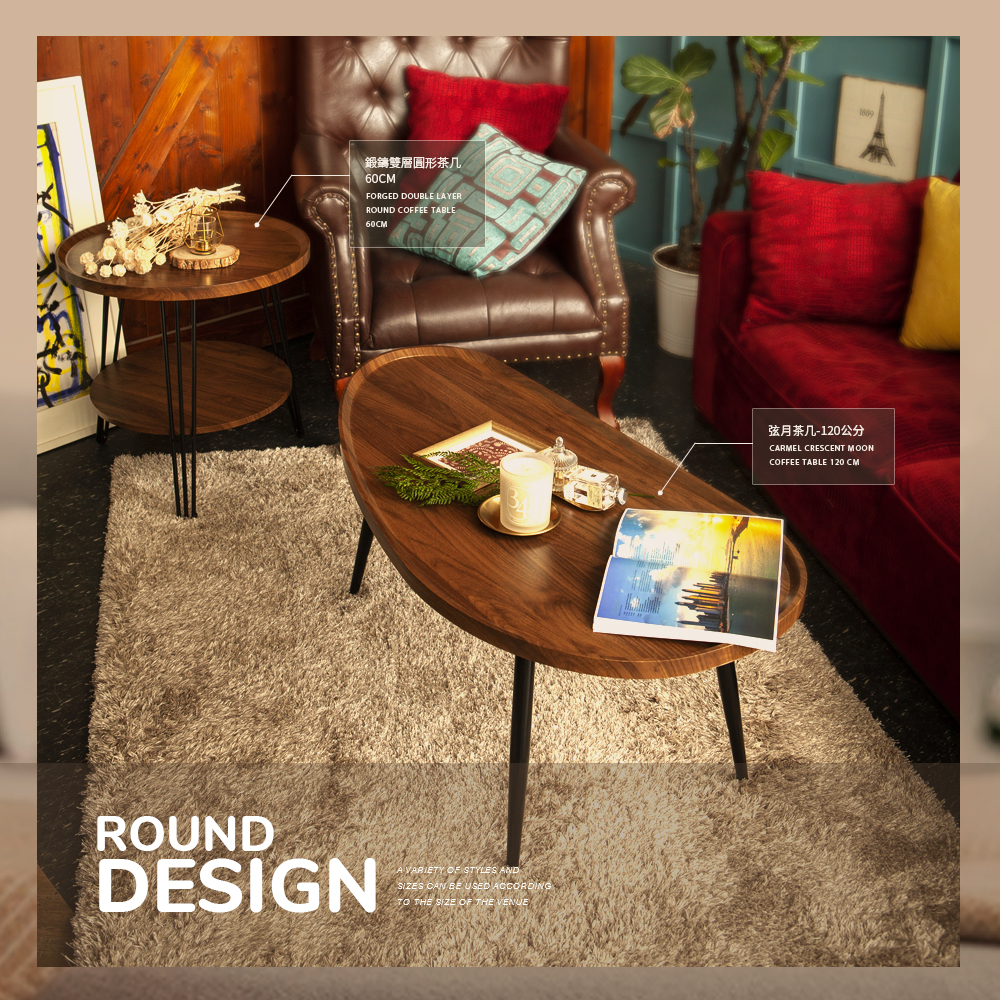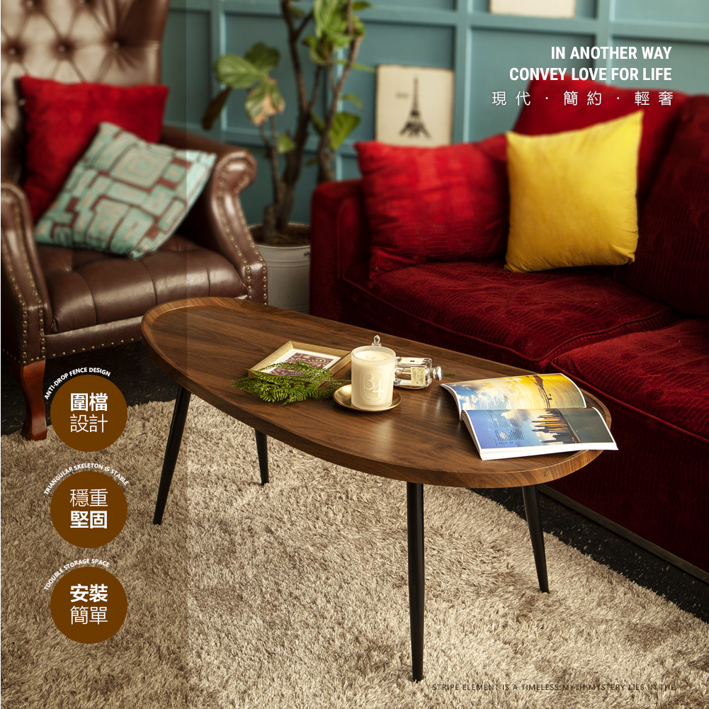 【FL生活+】木冶山居 弦月茶几-120CM 140CM 客廳桌 餐桌 矮桌 鋼化加粗烤漆桌腳 上層防摔圍檔設計035丨120公分-胡桃木|035丨120公分-白橡木|036丨140公分-胡桃木|036丨140公分-白橡木Desks & TablesFL生活+ 官方直營旗艦店