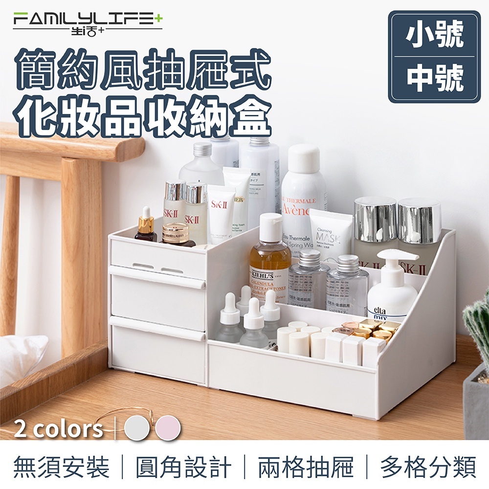 【FL生活+】化妝品收納盒 化妝品收納 化妝盒 化妝盒收納盒 收納盒 整理盒 桌上收納盒 桌上置物 桌面收納 置物盒小號-粉色25.2*15.4*11.5c|中號-白色28*17*13cm|中號-粉色28*17*13cm|小號-白色25.2*15.4*11.5Desk OrganizersFL生活+ 官方直營旗艦店