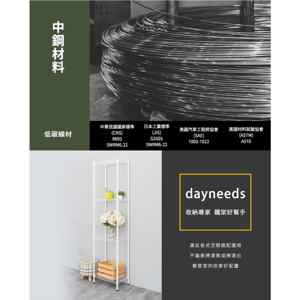 dayneeds 輕型45x30x180四層架-兩色 鐵力士架 收納架 廚房架 置物櫃黑色|白色Shelves & Racksdayneeds收納生活館