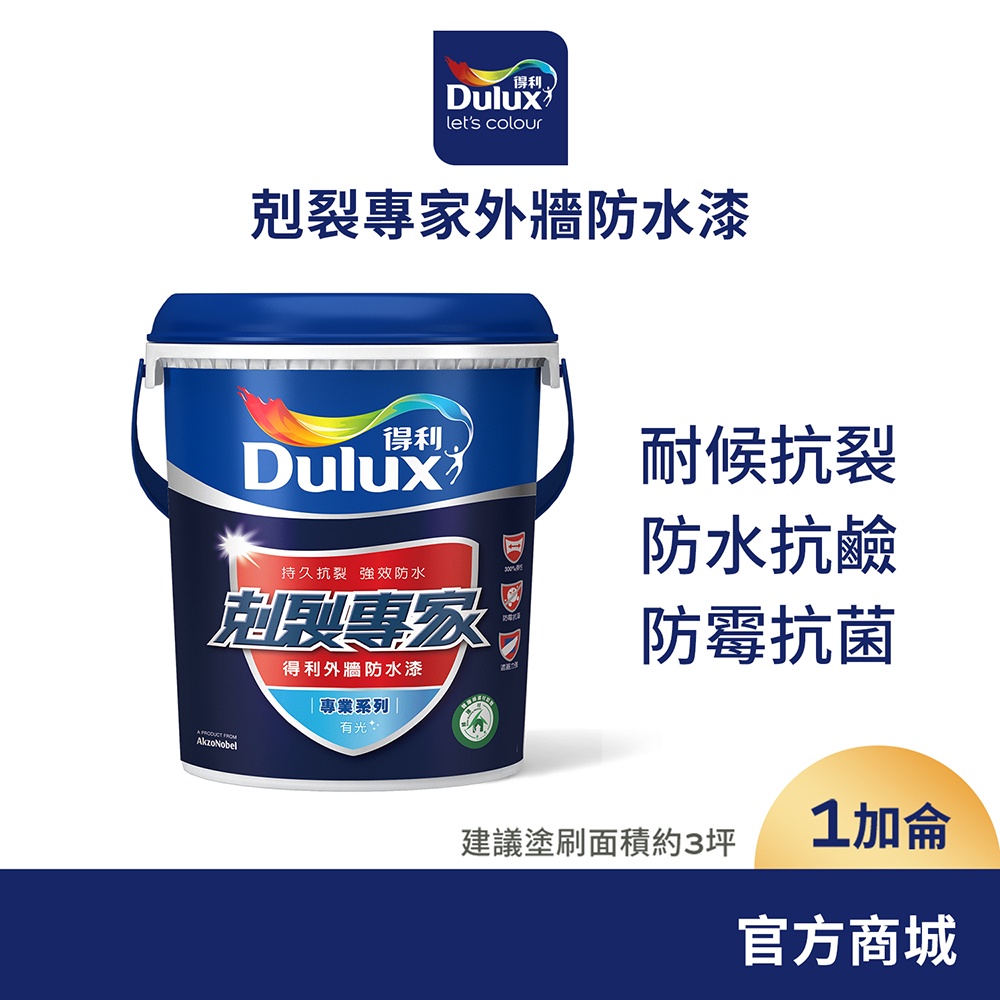 【得利官方旗艦店】A955 剋裂專家外牆防水漆(1加侖裝)淺咖啡|極地白|草綠|象牙|鐵灰|白色|水藍Wall Paints & CoatingsDulux得利塗料官方旗艦店
