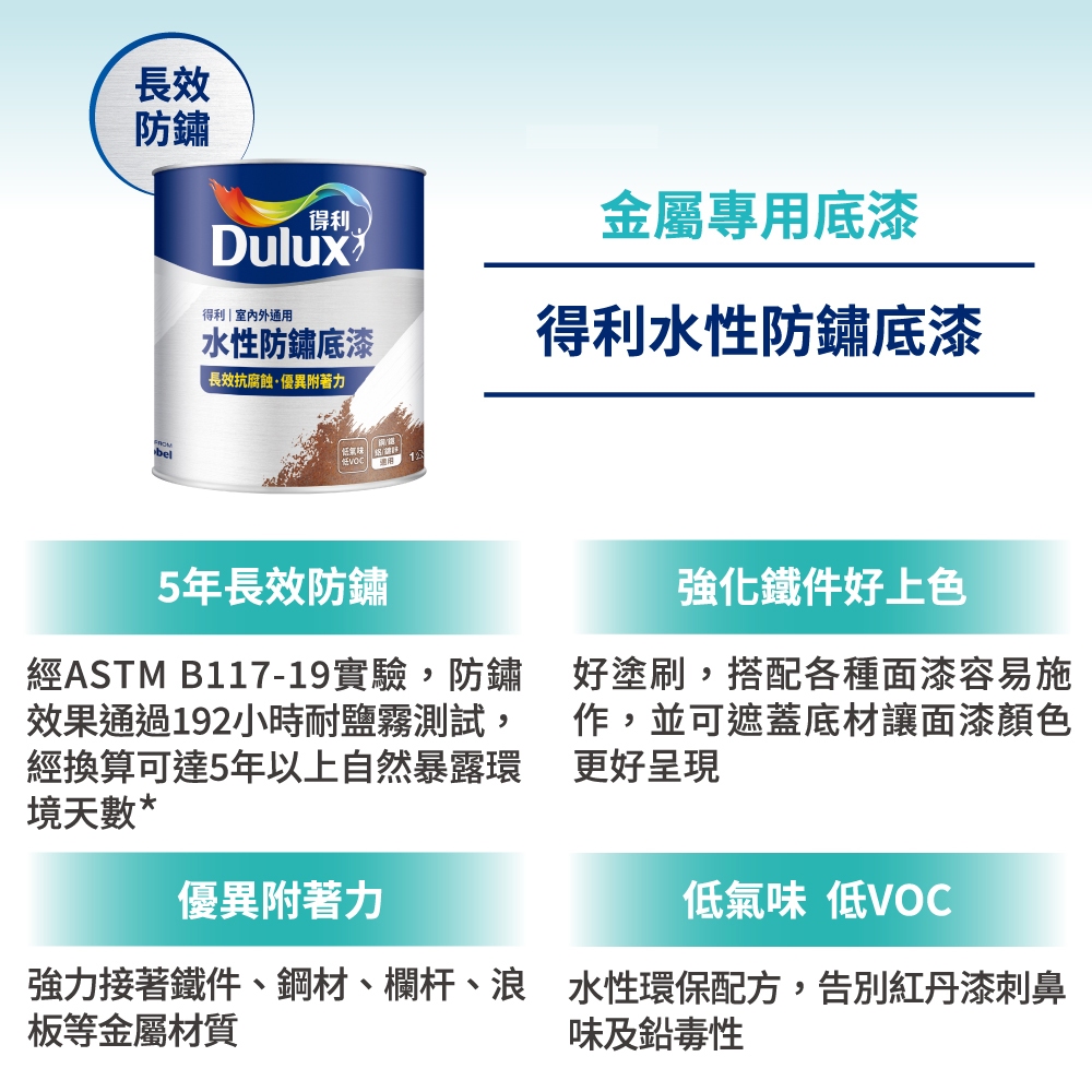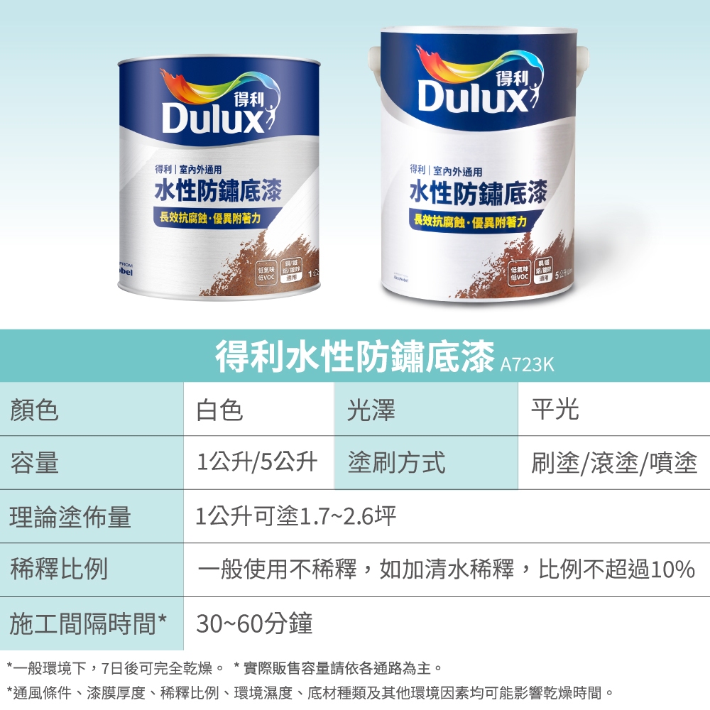 【得利官方旗艦店】A723K 水性防鏽底漆(1公升裝)【得利官方旗艦店】A723K 水性防鏽底漆(1公升裝)Wall Paints & CoatingsDulux得利塗料官方旗艦店
