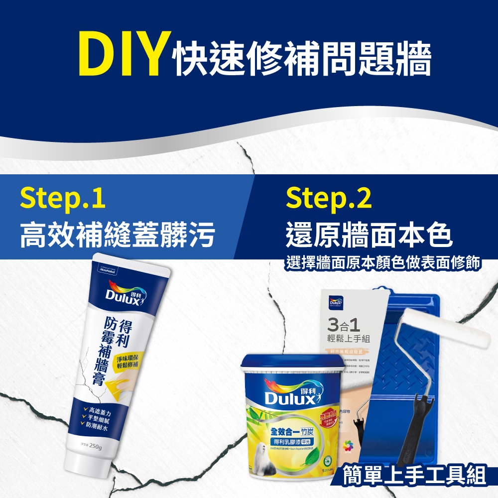 【得利官方旗艦店】全效合一+補牆膏+工具組(1公升裝組)百合白|特白|1501白|玫瑰白Wall Paints & CoatingsDulux得利塗料官方旗艦店