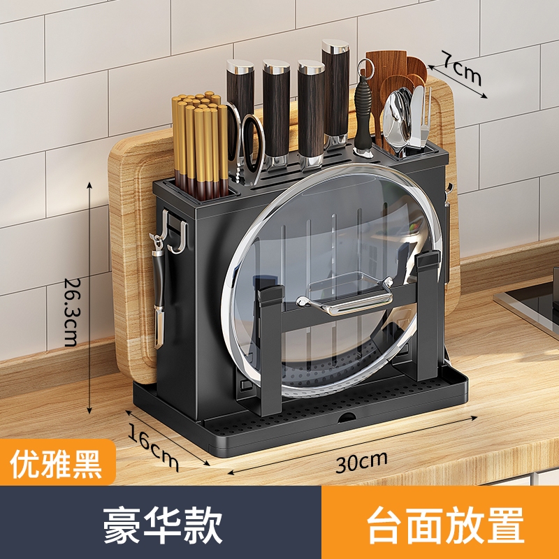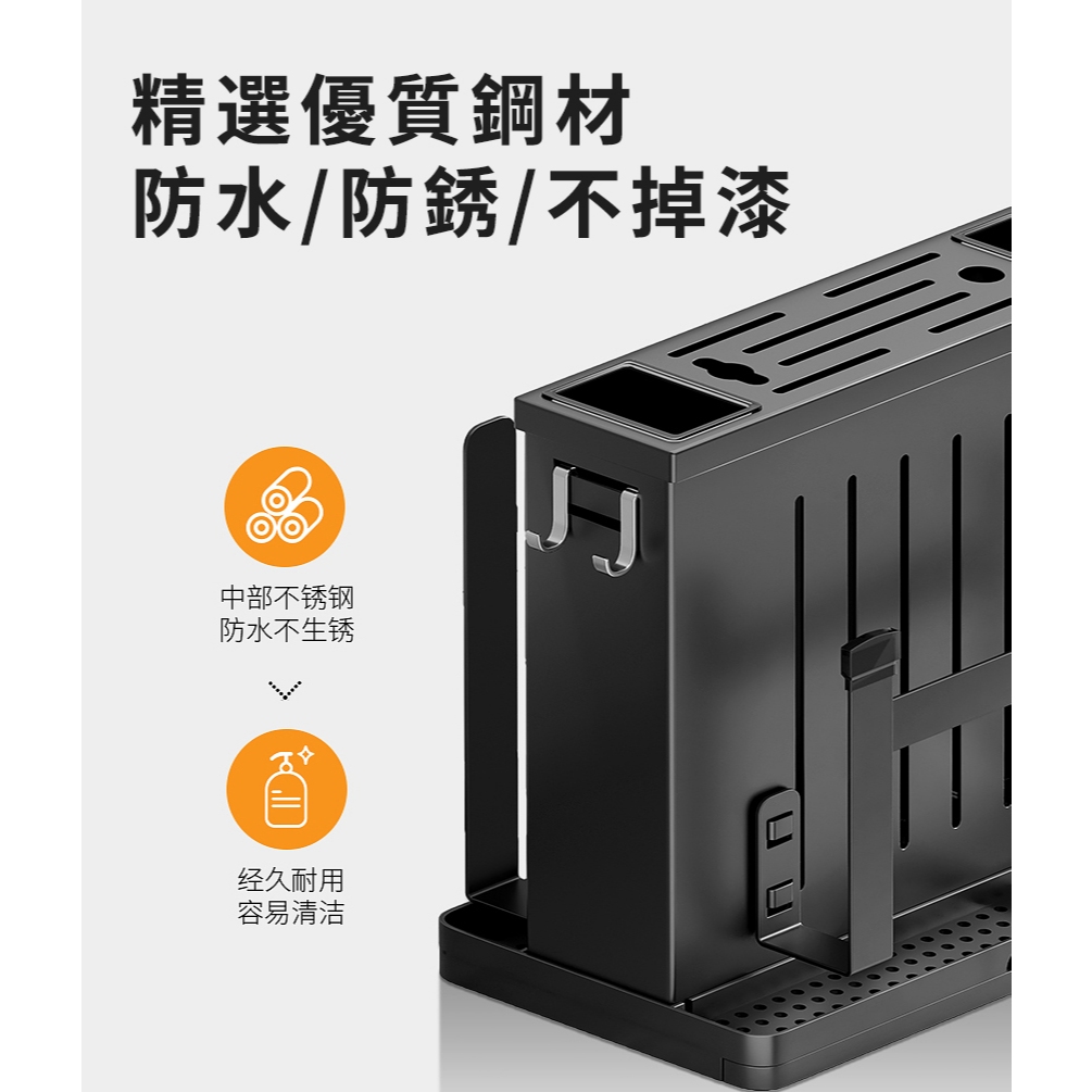 不鏽鋼刀具架 廚房收納架 菜刀收納 不鏽鋼 刀架 砧板架 菜刀架 筷子架 瀝水架 刀具架 筷架台面豪華款太空銀(603)|台面豪華款優雅黑(603)Kitchen RacksDUNU Lab