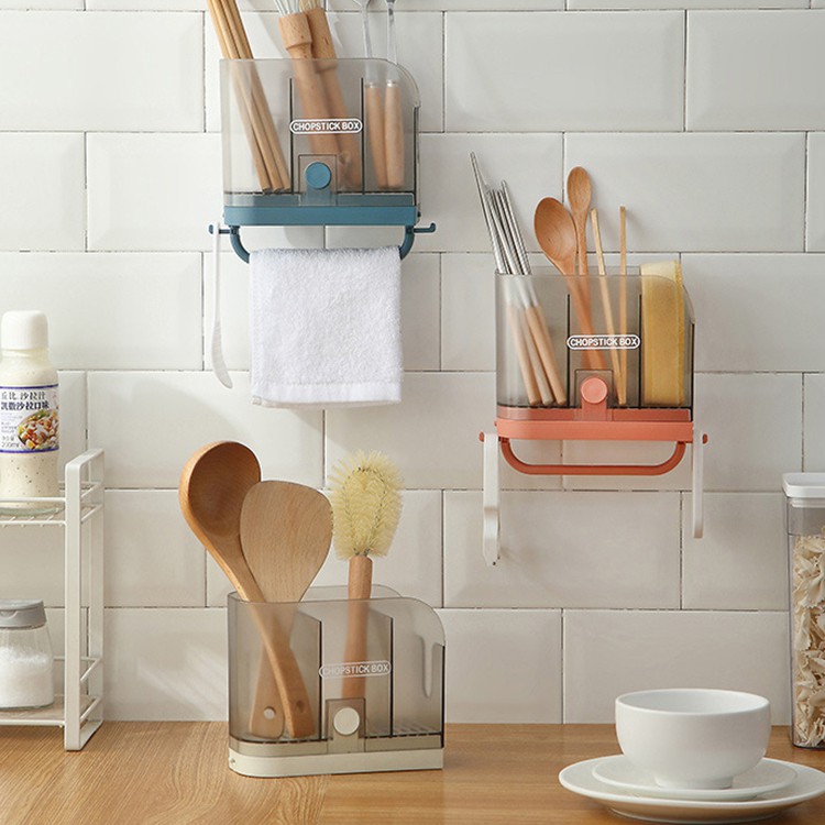 廚房瀝水置物架 透明款 1入 筷子收納 筷架 筷盒 瀝水架 置物盒 壁掛收納 桌面收納 收納盒 置物盒 思考家白|綠|橘|藍Desk OrganizerscZ思考家 – 3C手機配件
