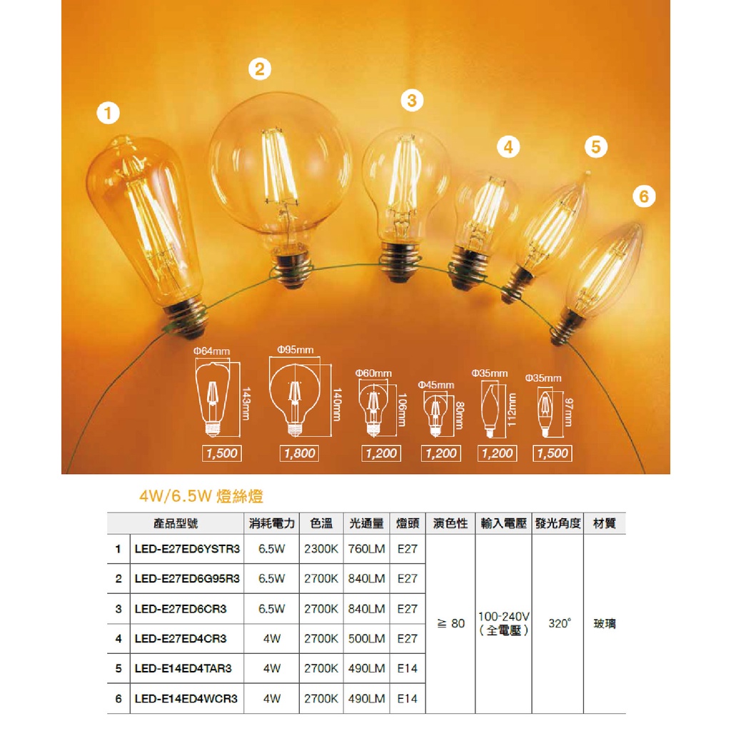 【舞光.LED】LED E14/4W拉尾燈絲燈蠟燭燈燈泡(黃光)【實體門市保固兩年】-E14ED4TAR3 水晶燈燈泡【舞光.LED】LED E14/4W拉尾燈絲燈蠟燭燈燈泡(黃光)【實體門市保固兩年】-E14ED4TAR3 水晶燈燈泡DREAM LIGHTS 築光燈飾