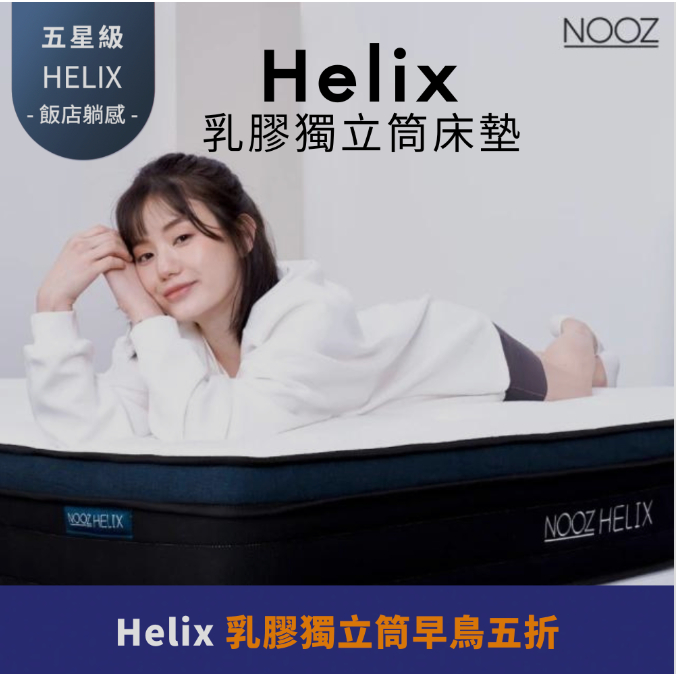 床墊專區 Nooz Helix乳膠獨立筒床墊【五星飯店躺感】100%天然SGS飯店御用標準單人3呎 9/3陸續出貨|單人加大3.5呎 9/3陸續出貨|雙人加大6呎 少量現貨|雙人特大6X7呎 少量現貨|標準雙人5呎 少量現貨MattressesDreamlands精選名床|官方旗艦店Lunio / Nooz床墊
