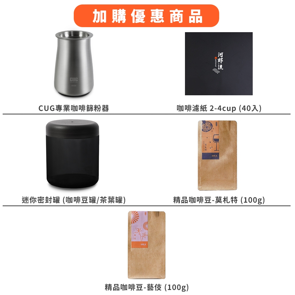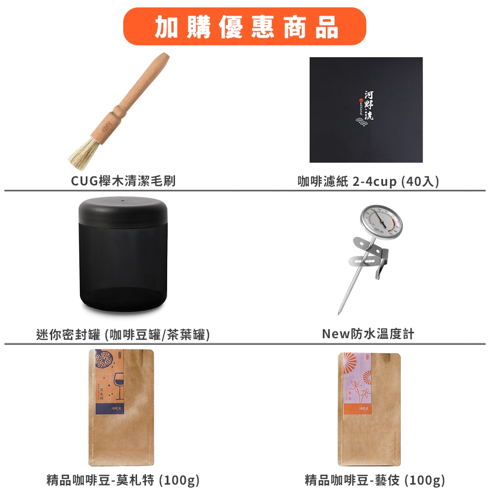 Driver 達人進階手沖咖啡套裝組 手沖壺 細口壺 咖啡濾杯 耐熱玻璃壺 手搖磨豆機 咖啡豆匙 手沖咖啡組 官方直營達人進階手沖咖啡套裝組,精品咖啡豆-莫札特 (100g)|達人進階手沖咖啡套裝組,精品咖啡豆-藝伎 (100g)|達人進階手沖咖啡套裝組,咖啡錐形濾紙 2-4cup (40入)|達人進階手沖咖啡套裝組,迷你密封罐 (咖啡豆罐/茶葉罐)|達人進階手沖咖啡套裝組,New防水溫度計|達人進階手沖咖啡套裝組,無需加購|達人進階手沖咖啡套裝組,CUG櫸木清潔毛刷Tea, Coffee & Bartending EquipmentsDriver 官方旗艦店|村宜企業