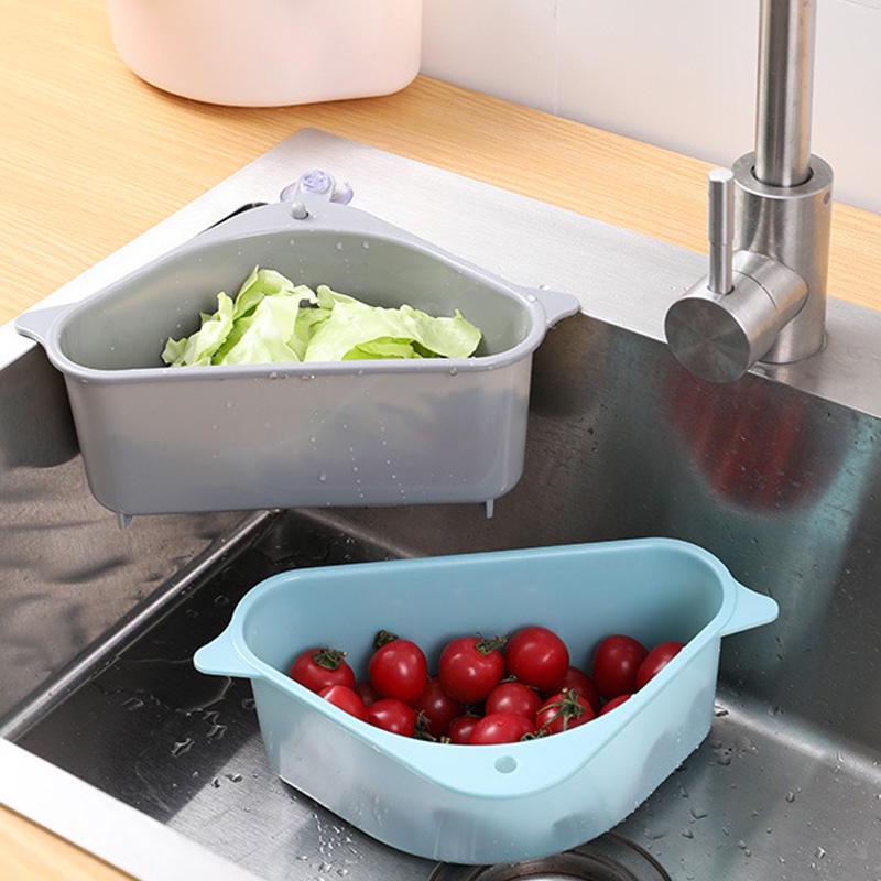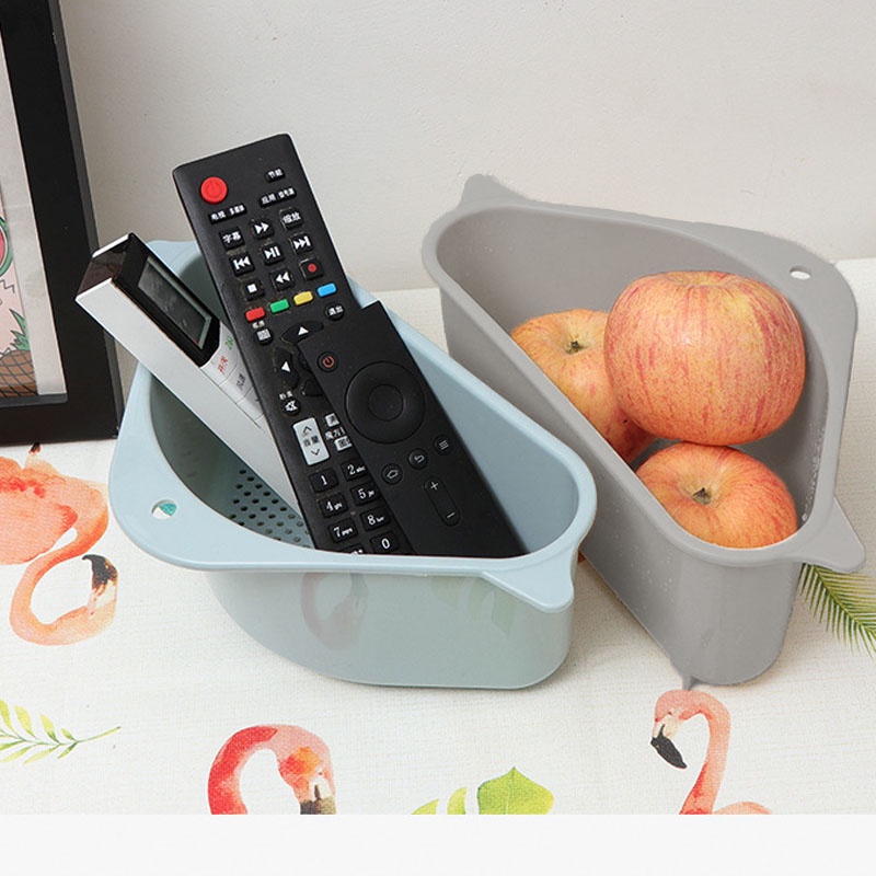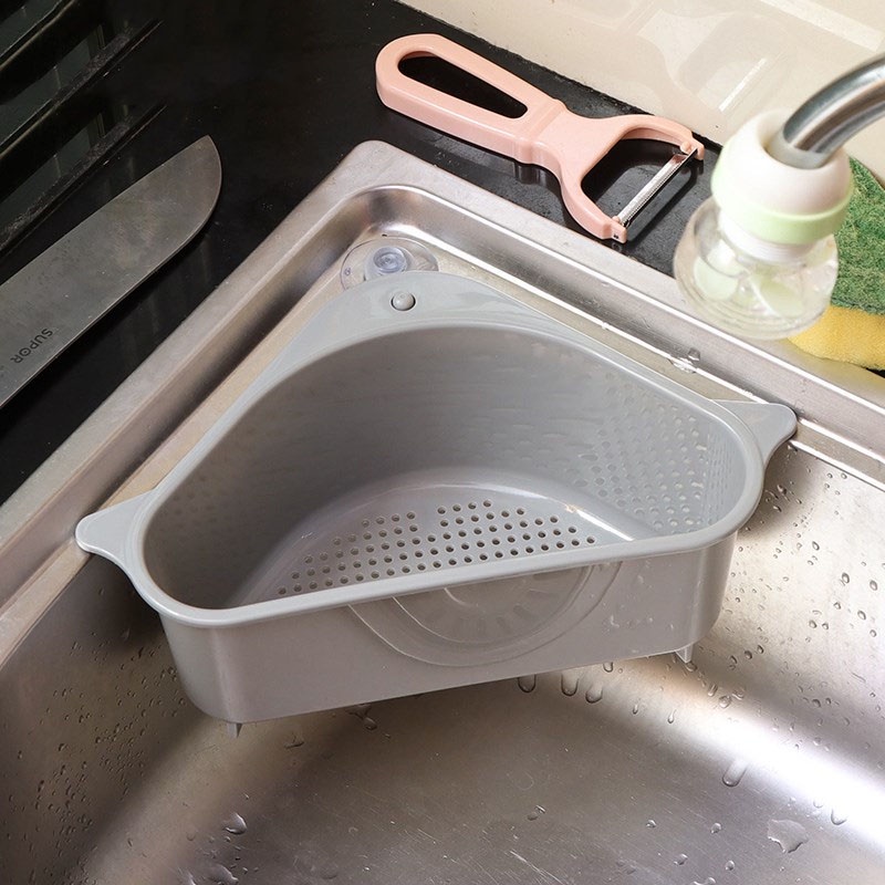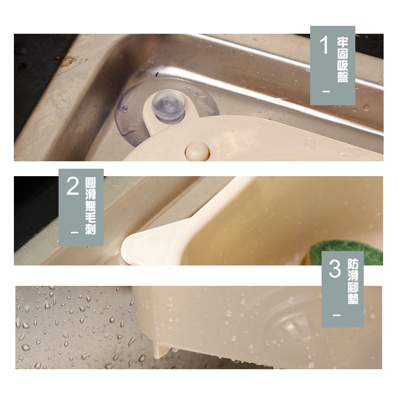 日式三角水槽瀝水籃 多功能瀝水籃 清洗籃 水槽瀝水架 菜瓜布架 海綿架 吸盤式置物架【DH048】三角灰Kitchen RacksFS生活品專賣