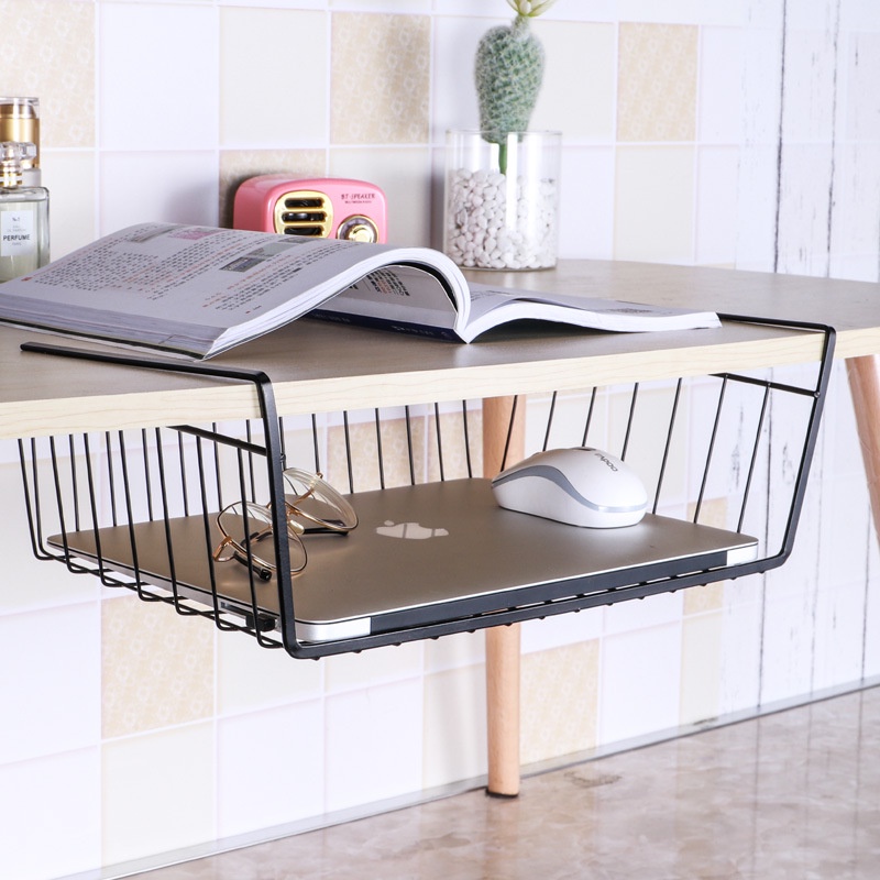 下掛式網格收納籃 置物籃 置物架 掛籃 掛勾 桌下置物籃 鐵藝 大號掛籃 辦公室 收納 下掛架【HA044】掛籃-黑【一般款】|掛籃-白【一般款】|掛籃-黑【升級掛勾款】|掛籃-白【升級掛勾款】|掛籃-黑【雙叉款】|掛籃-白【雙叉款】 Storage Boxes, Bags & BasketsFS生活品專賣