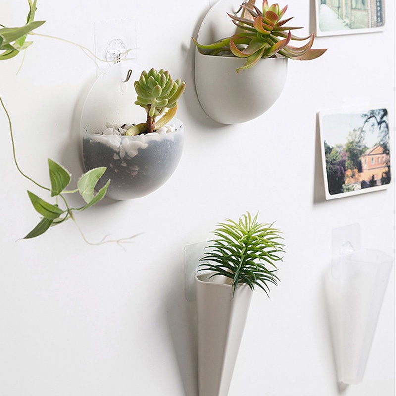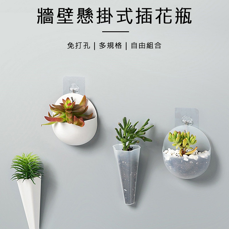 壁掛花盆 迷你花盆 牆壁懸掛式插花瓶 免釘無痕 插花瓶 懸掛花盆 掛壁盆栽 小花盆 綠化【DA163】錐形-透明|半圓-透明Pots & PlantersFS生活品專賣
