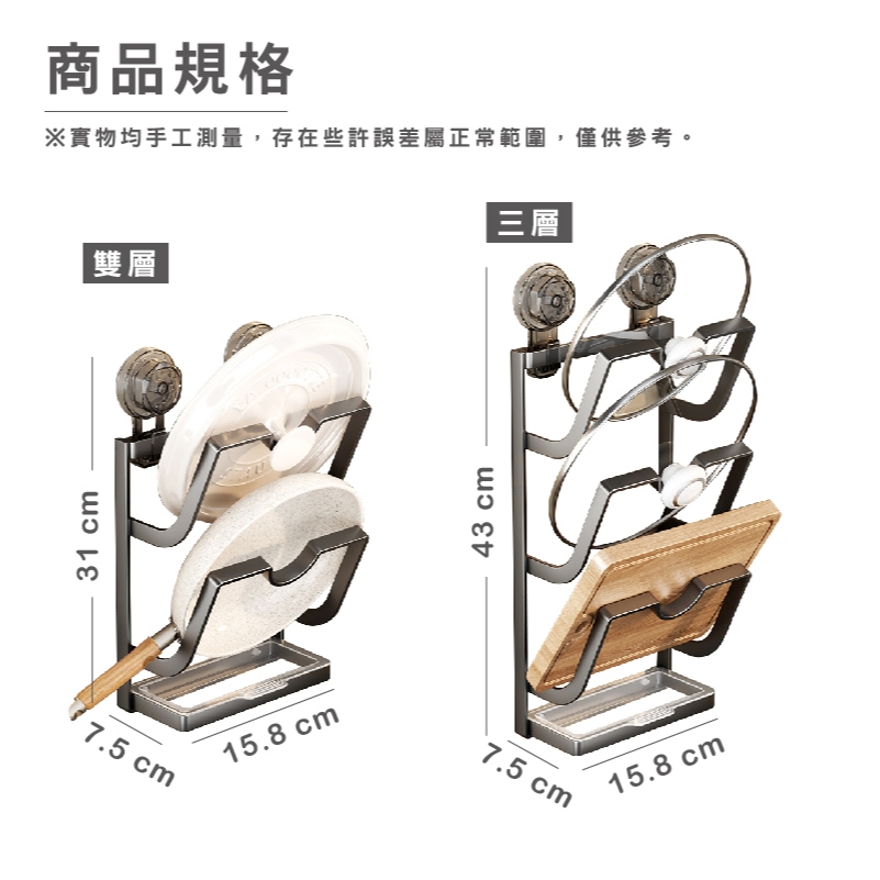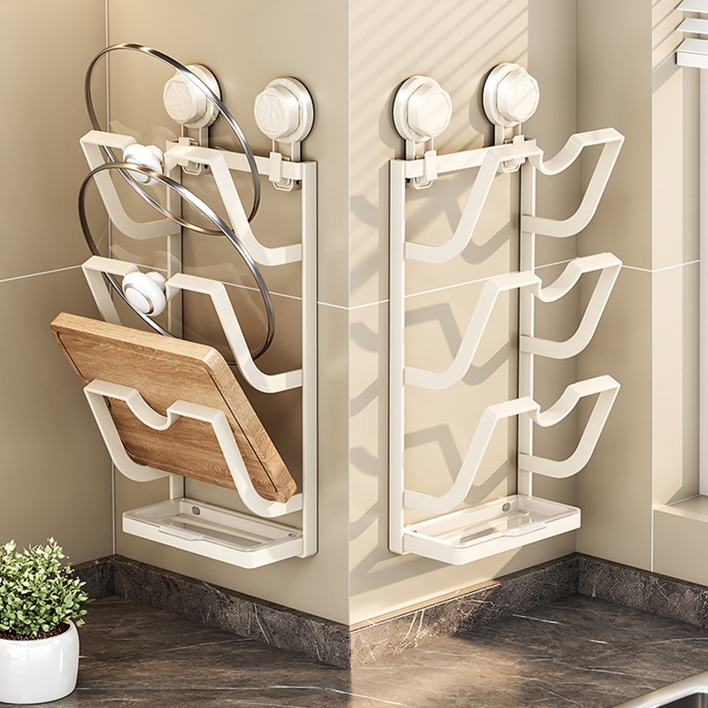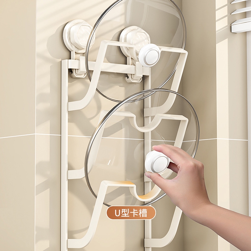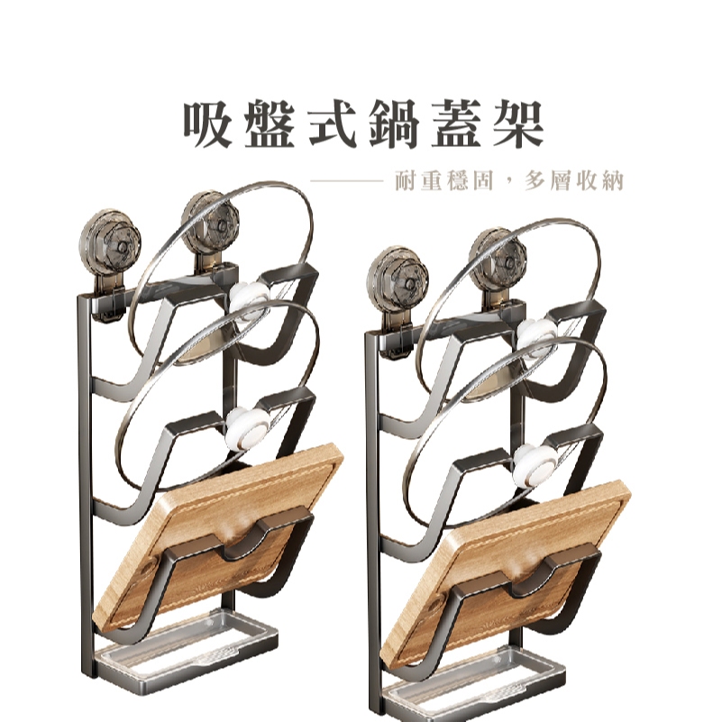 吸盤鍋蓋架 砧板架 鍋蓋收納架 壁掛鍋蓋架 廚房收納架 壁掛式收納架 廚房置物架 廚房收納_HA025吸盤_2層_槍灰色_|吸盤_3層_槍灰色_|吸盤_2層_奶白色_|吸盤_3層_奶白色_Kitchen RacksFS生活品專賣