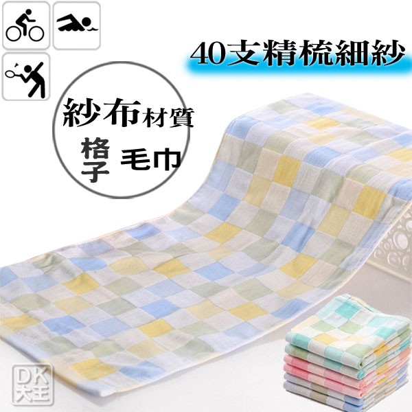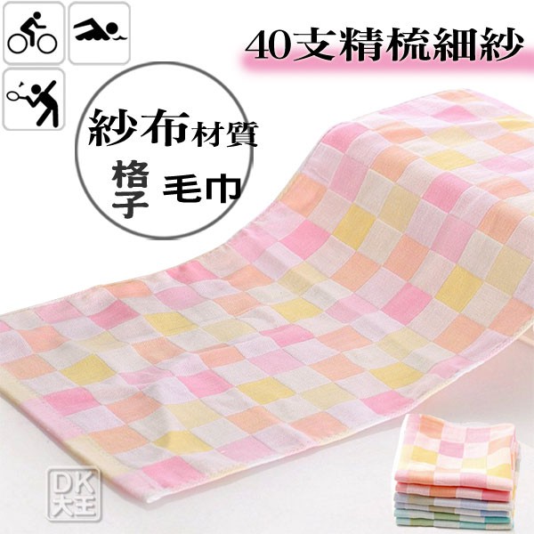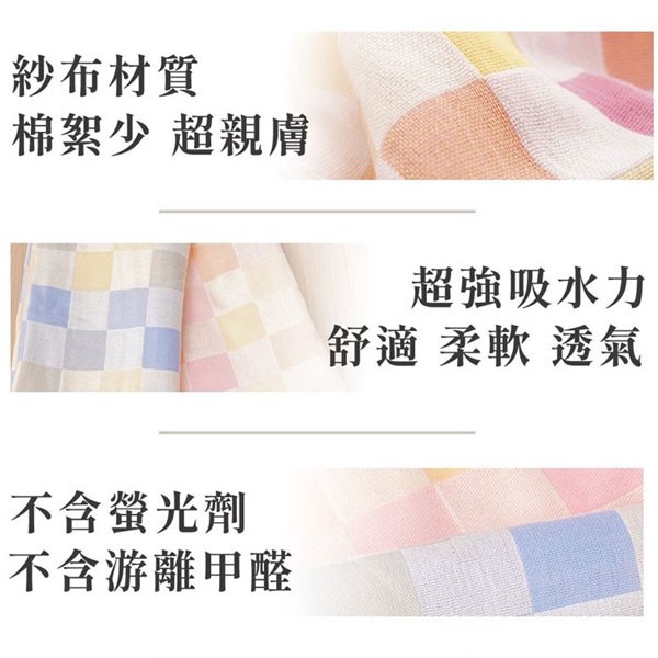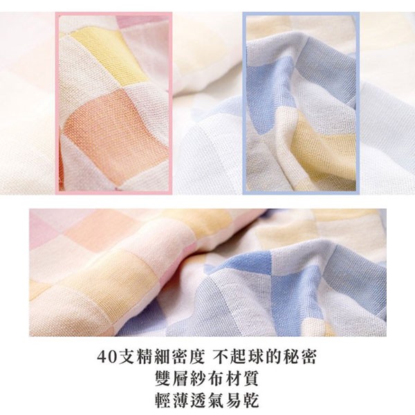彩色格子紗布毛巾 雙層紗布毛巾【DK大王】|藍綠色/1條|粉色/1條Towels & BathrobesDK大王旗艦店