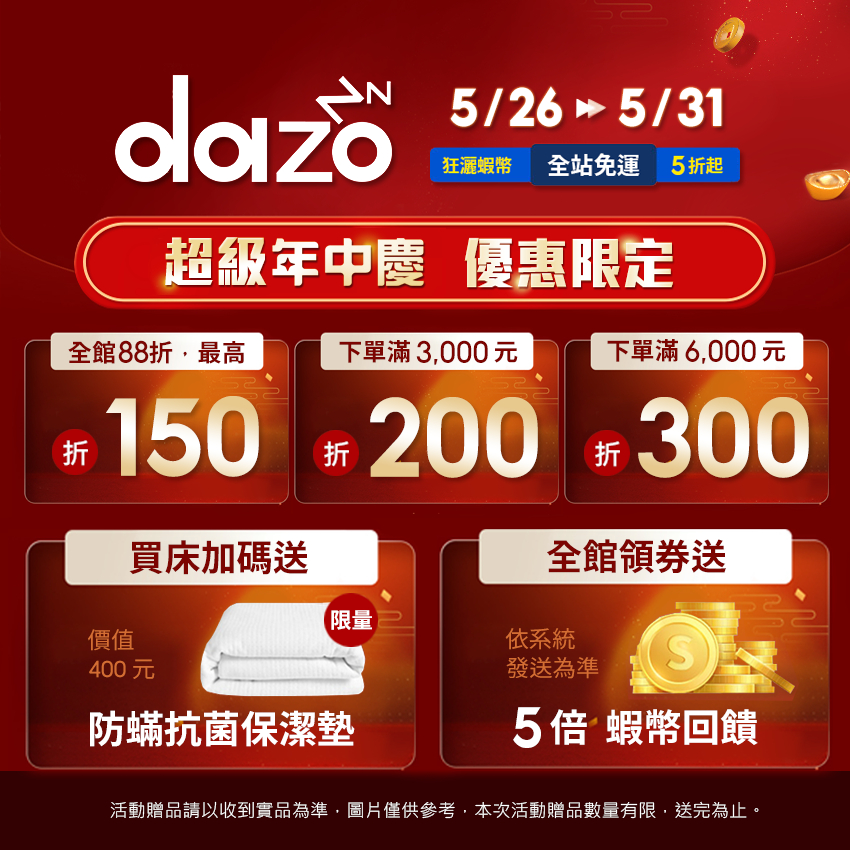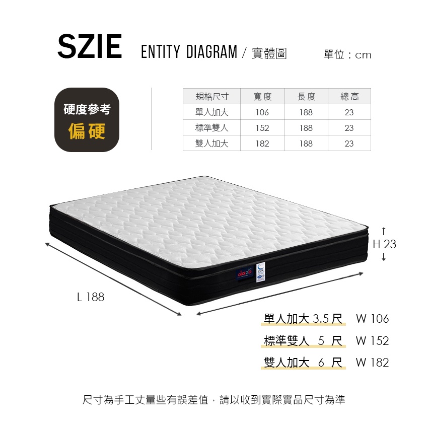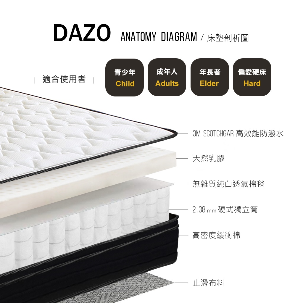 【 Dazo 】適中偏硬|3M 天然乳膠 硬式獨立筒 床邊加強支撐 免翻面 床墊【 蝦幣 10 倍送 】雙人加大 6 尺 + 防蟎保潔墊|單人加大 3.5 尺 + 防蟎保潔墊|標準雙人 5 尺 + 防蟎保潔墊MattressesDazo 得舒官方旗艦店