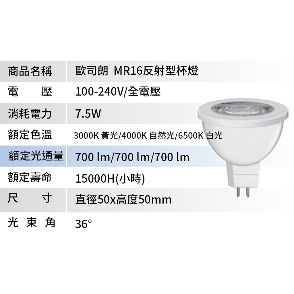 【歐司朗 OSRAM】LED MR16/7.5W直壓反射型杯燈(黃光/自然光/白光)【實體門市保固一年】MR16杯燈3000K 黃光|4000K 自然光|6500K 白光DREAM LIGHTS 築光燈飾