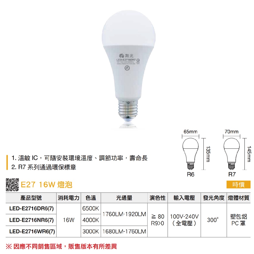 【舞光.LED】 LED E27/16W球泡燈泡(黃光/自然光/白光)【實體門市保固兩年】-E2716D/N/WR63000K黃光|4000K 自然光|6500K 白光DREAM LIGHTS 築光燈飾