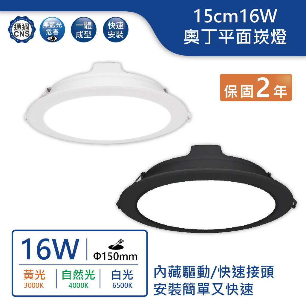 【舞光.LED】LED 15cm16W平面奧丁崁燈(黃光/自然光/白光)【實體門市保固兩年】-15DOO16WR2黑殼,6500K 白光|黑殼,4000K 自然光|黑殼,3000K 黃光|白殼,6500K 白光|白殼,4000K 自然光|白殼,3000K 黃光DREAM LIGHTS 築光燈飾