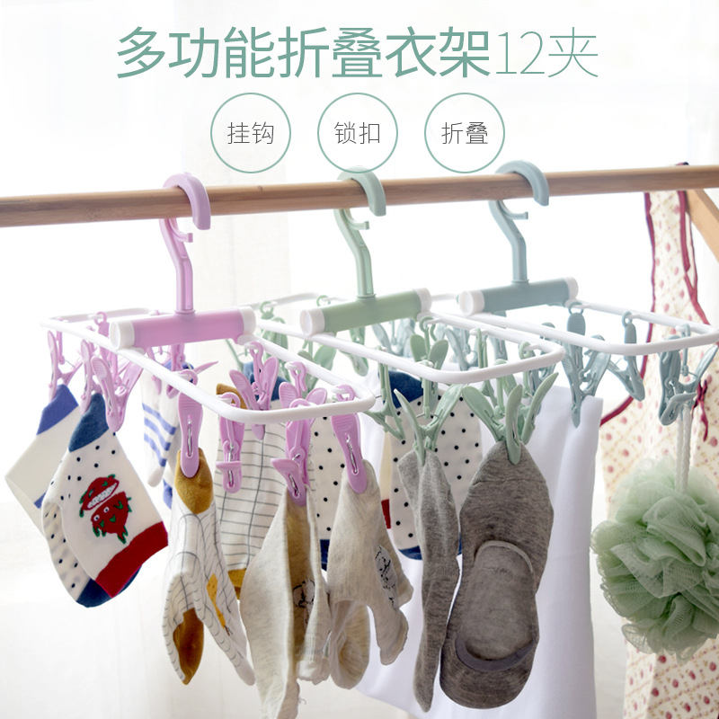 家用32夾衣架晾曬夾方形可折疊塑料防風衣架襪子多功能晾曬架【B333】32夾-顏色隨機|20夾白灰|12夾可折疊Hangers & PegsFS生活品專賣