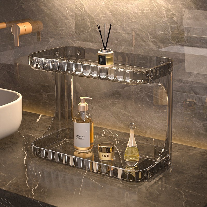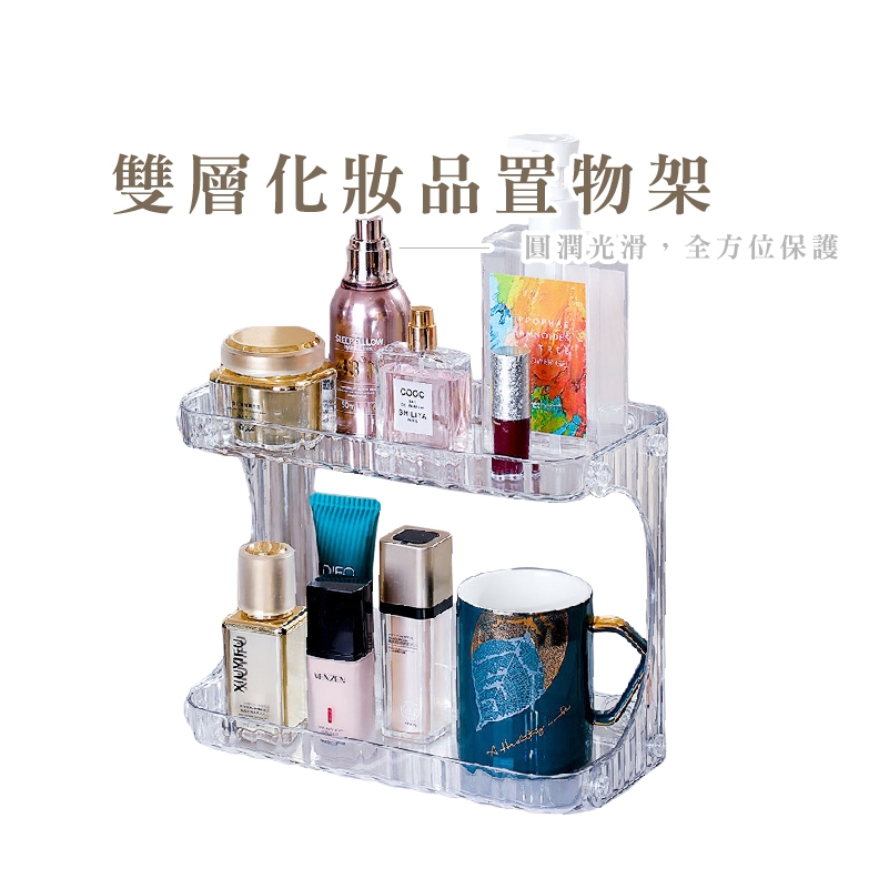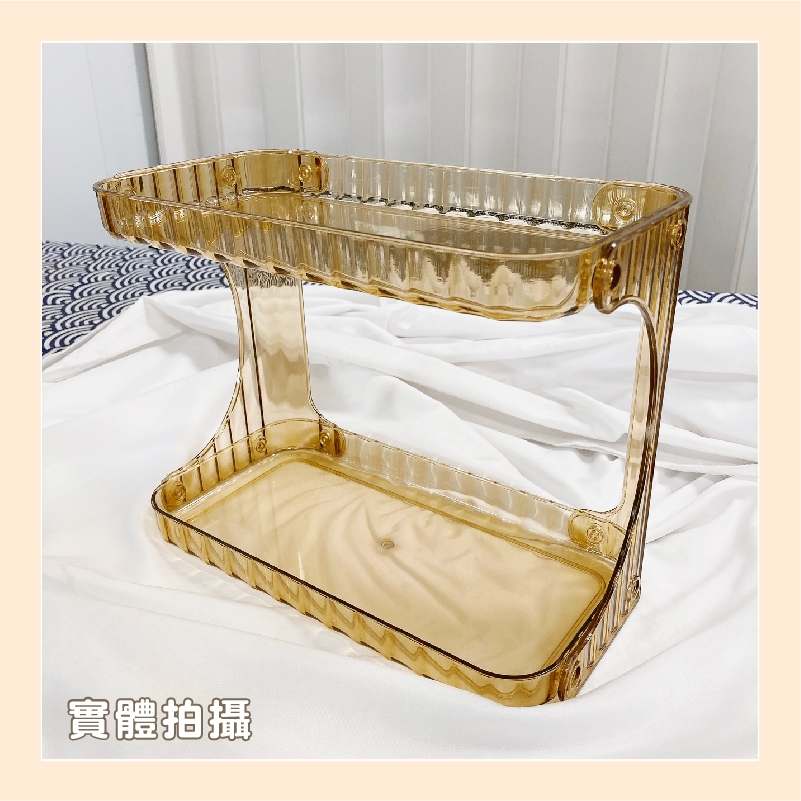 調料罐置物架 收納架 塑膠收納架 桌面儲物收納架 衛生間洗漱整理架 置物架 防水置物架 浴室置物架_DH165雙層輕奢置物架 (透茶色)|雙層輕奢置物架 (透白色)|雙層調料架(灰色)Desk OrganizersFS生活品專賣