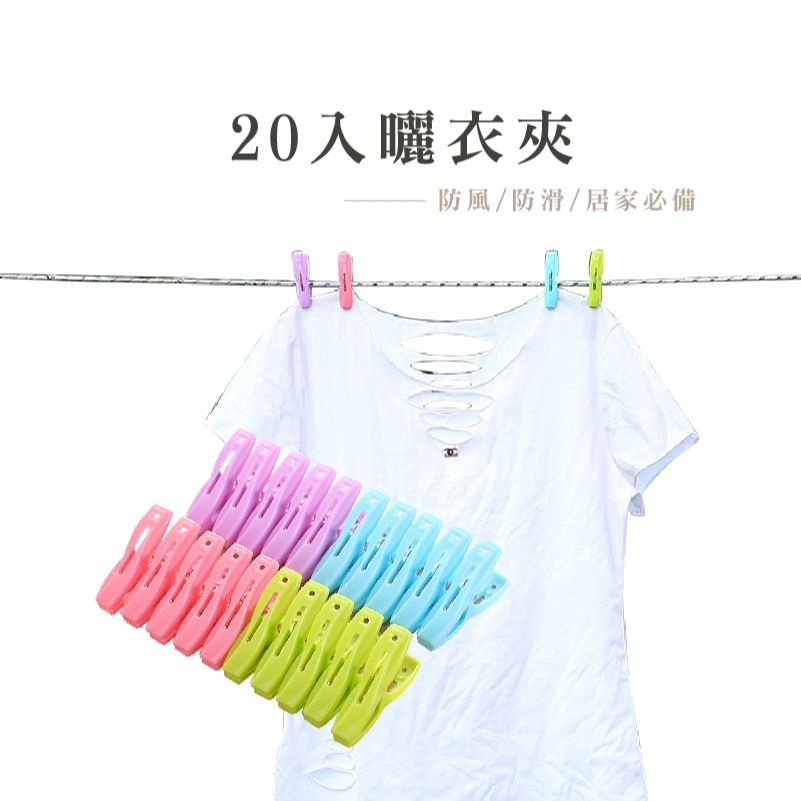 20入 多功能塑膠曬衣夾 耐用不易壞 強力夾力不傷衣物 曬衣必備 夾子 曬衣夾 襪夾 塑料夾 曬衣夾子 純色_B384
