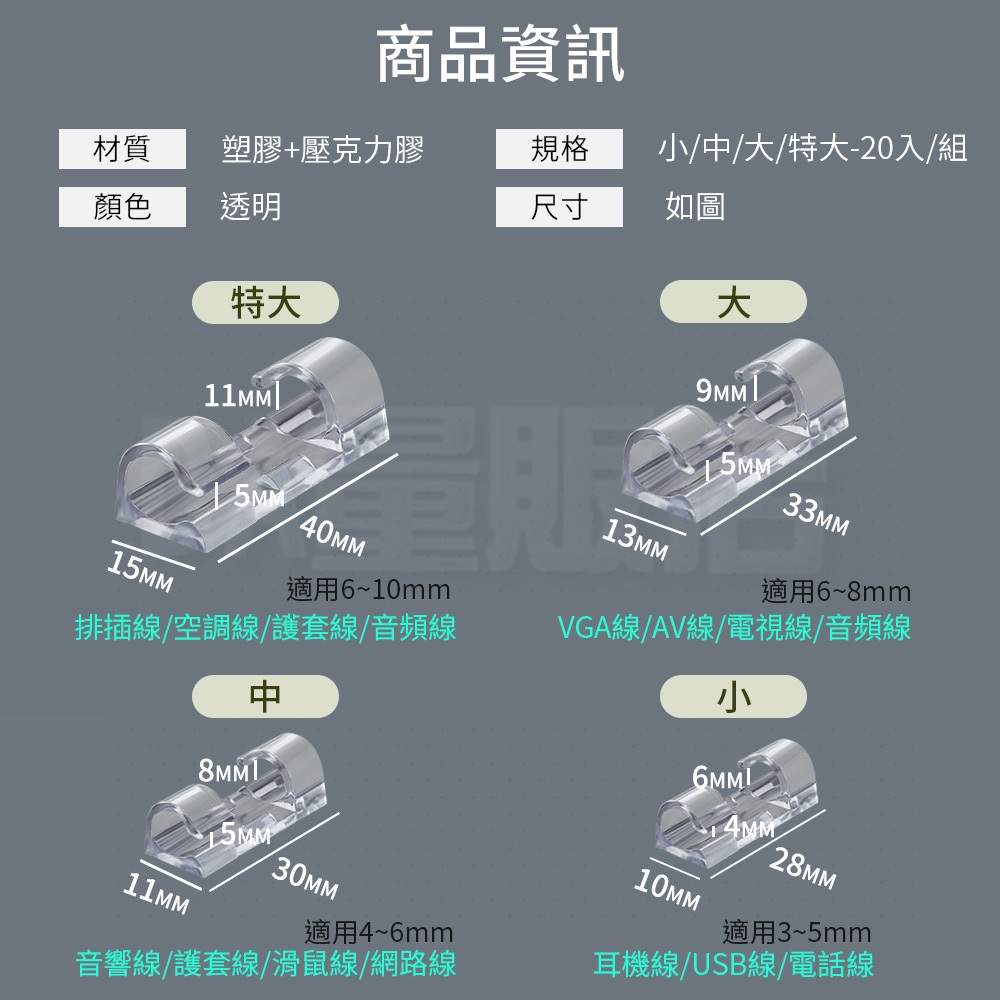 電線固定器 理線器 整線器 20入裝 電線固定座 延長線固定器 電線理線器 線材收納 電線扣 黏貼式固線器小號28*10mm[20顆]|中號30*11mm[20顆]|大號33*13mm[20顆]|特大號40*15mm[20顆]OthersDA量販店